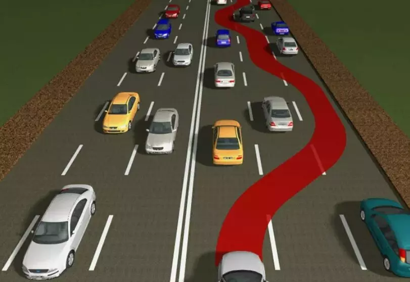 在车流中穿梭时,你的行驶速度应始终高于车流,大约高出15-30公里/小时。进行变道前,需要提前几秒钟观察车流情况,并确保前方没有警车。变道时,无需使用转向灯,因为我们驾驶的是急救车辆。(如果车辆安装了定速巡航系统,那么在这种情况下甚至可以在对向车道行驶);流中的跳棋示例: