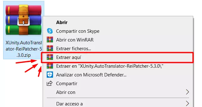 创建该文件后,我们需要右键点击它,然后选择【在此处解压】,这将生成一个带有类似谷歌翻译图标的补丁(暂不要运行它)。