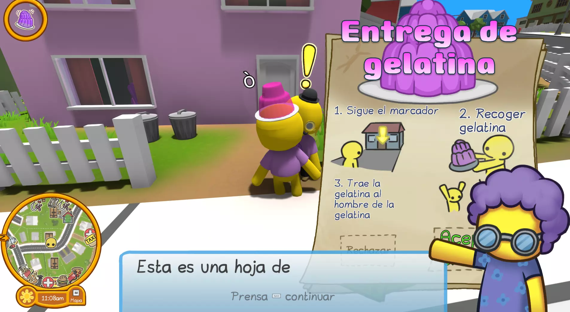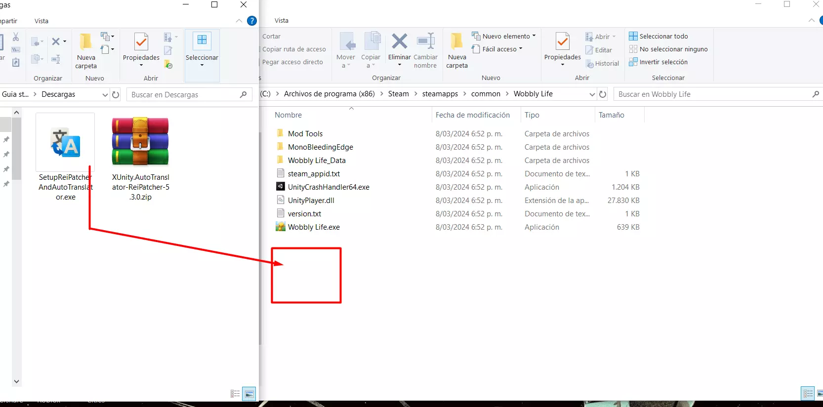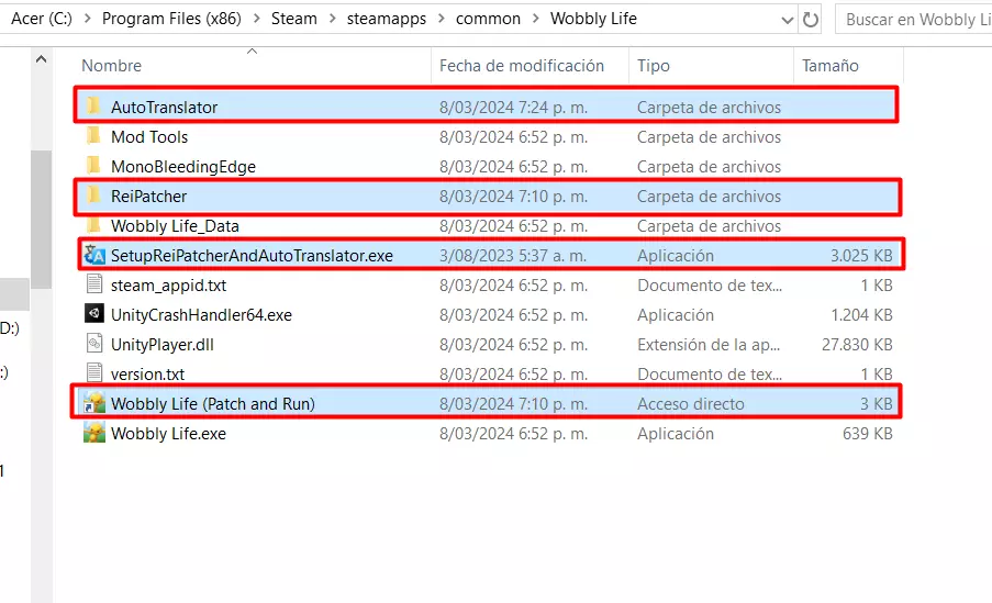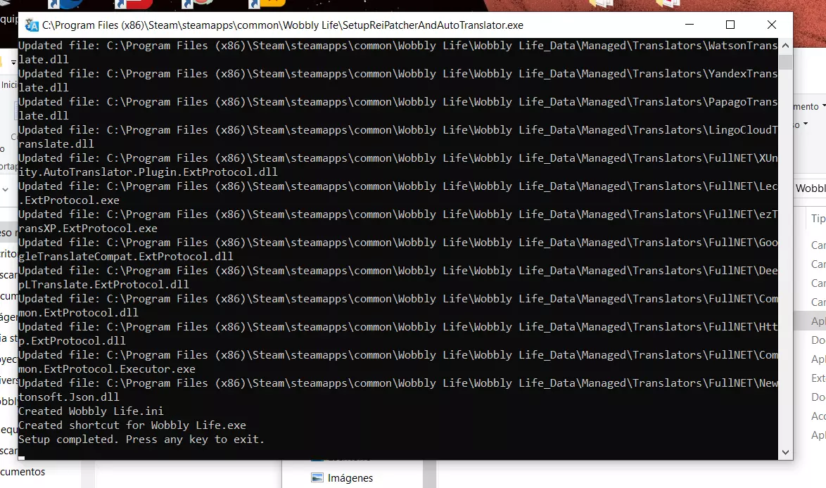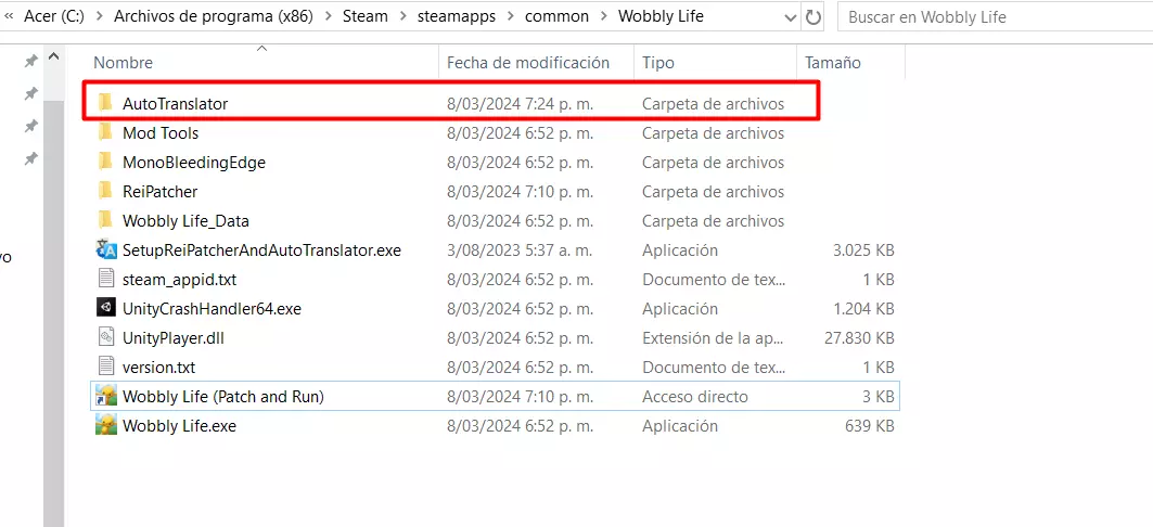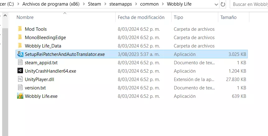它是如何工作的?“我不明白” 好吧,到这里我猜你可能会问“为什么一会儿显示英文,一会儿又翻译出来了?”或者“为什么西班牙语显示会有延迟?” 其实,这是因为补丁建议使用与游戏相同的字体,同时进行翻译。因此,翻译内容显示在屏幕上会有一点延迟;补丁就是这样工作的,有时候在游戏启动时,你最好打开设置,在那里停留一会儿,再打开设置的其他部分,比如音频、系统等。该补丁会收集游戏中出现的所有文本,这些文本会在你游玩过程中被收集起来,并保存在补丁创建的文件中(我们在游戏文件中已经看到了这些文件)。当游戏中再次出现相同的字体、字号、图片和文本时,就能立即显示为西班牙语,不会有任何延迟。 因此,如果在每句话、文本气泡的开头出现英文,不必担心,这对补丁来说是正常现象。只需让补丁运行几秒钟,它处理完成后就会立即为你翻译,这个过程其实很快,你在游戏中就能注意到。不过,有时补丁可能无法翻译某些内容(这些内容非常少),或者翻译后难以理解,就像谷歌翻译的结果一样,但在大多数情况下(甚至可以说几乎总是),它运行得非常好且正常。 如何卸载补丁? 如果你不喜欢补丁的运行效果,可以选择卸载它,这其实非常简单,你只需执行以下步骤: 1. 在Steam中进入游戏的“查看本地文件” 2. 删除以下文件:AutoTranslator、ReiPatcher、SetupReiPatcherAndAutoTranslator、Wobbly Life (Patch and Run)