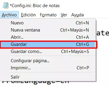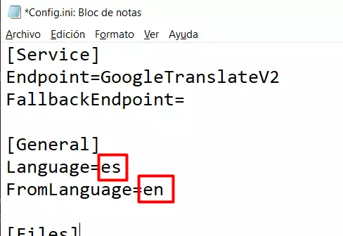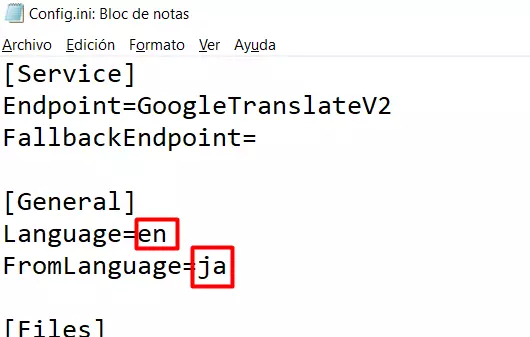 此时我们需要定位到以下部分: [常规] 语言=英文 源语言=日文 然后将“语言=英文”更改为“语言=西班牙文”,将“源语言=日文”更改为“源语言=英文”。修改后应如下所示: [常规] 语言=西班牙文 源语言=英文 最后,完成此步骤时,保存记事本并将其与游戏文件一起关闭。