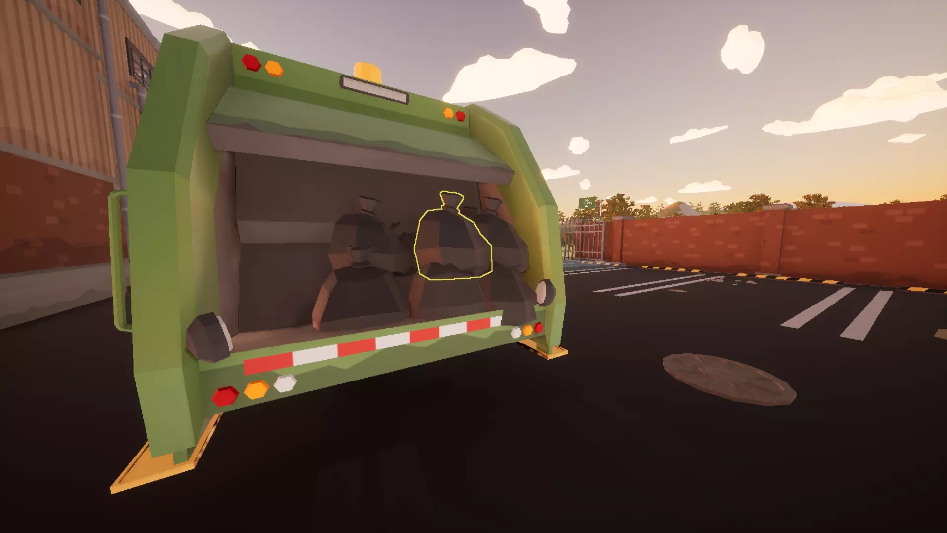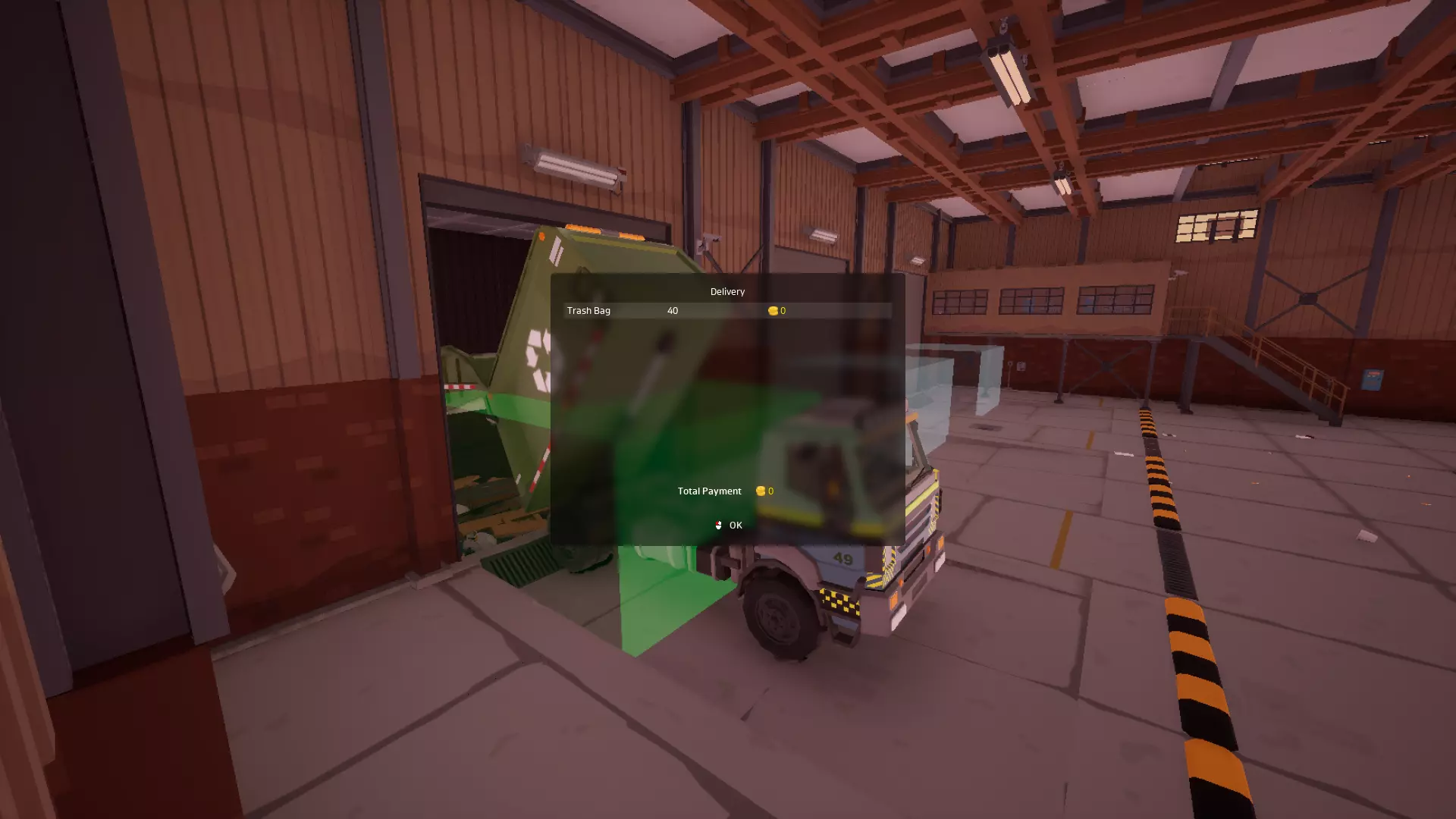 将垃圾袋扔进卡车里;一开始可能有点棘手,但之后你就会知道该怎么放置它们了。另外要这样做4次,因为最大装载量是40袋,所以4×10=40。