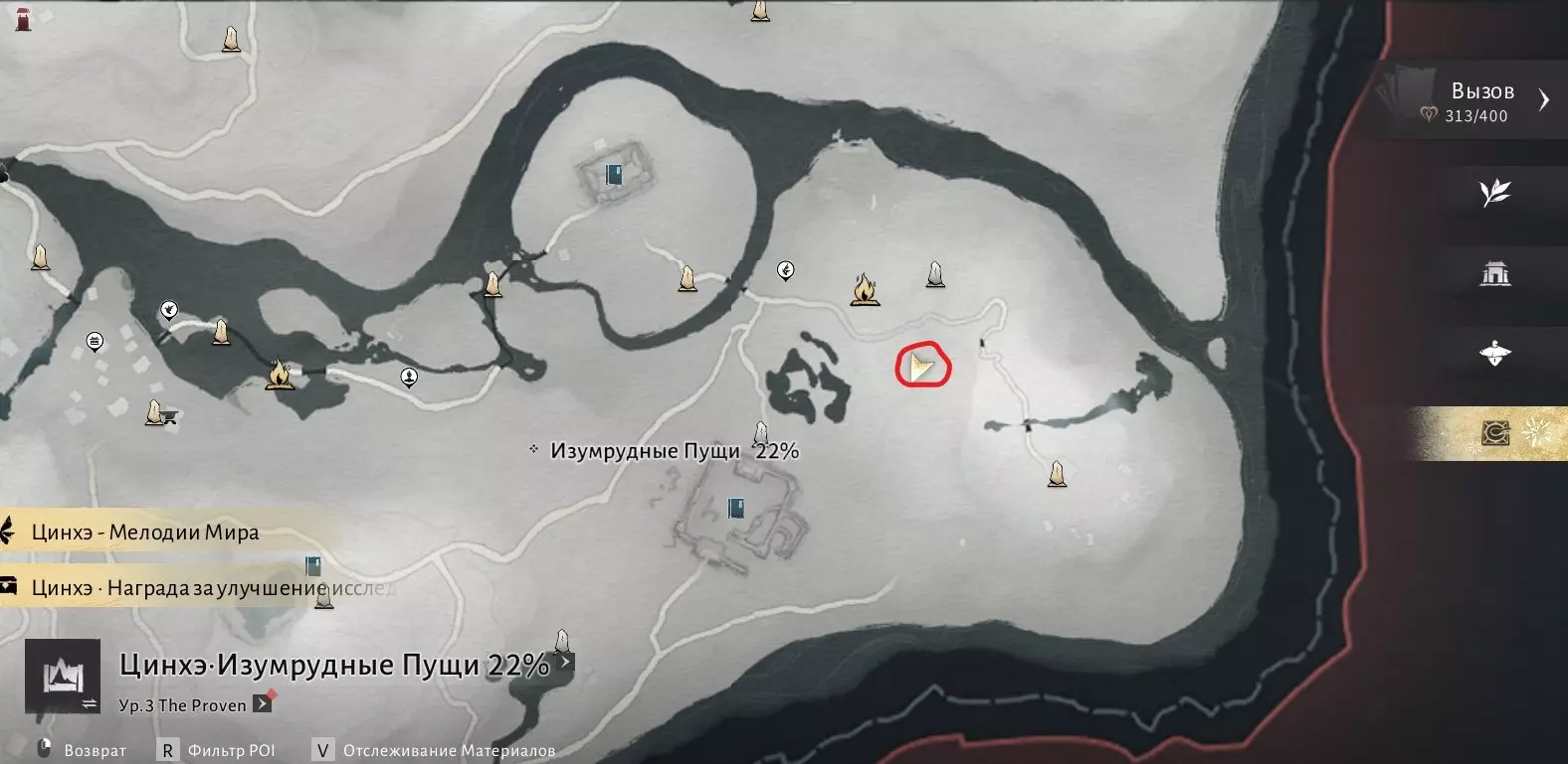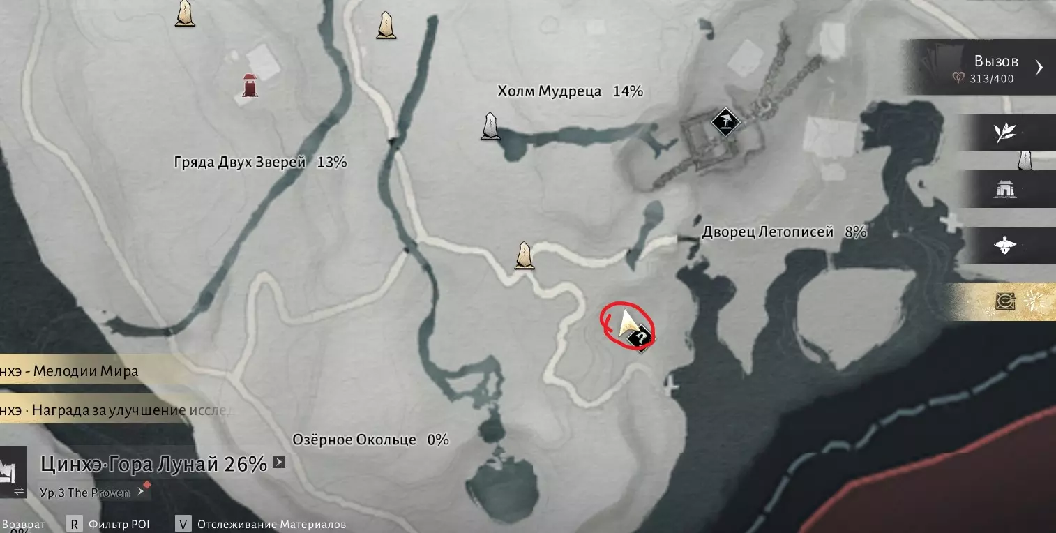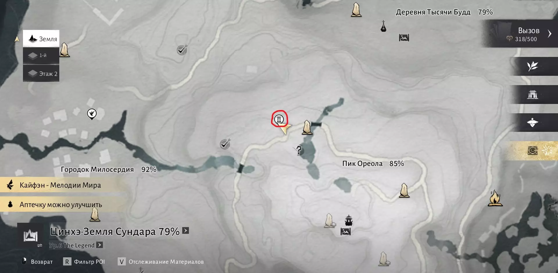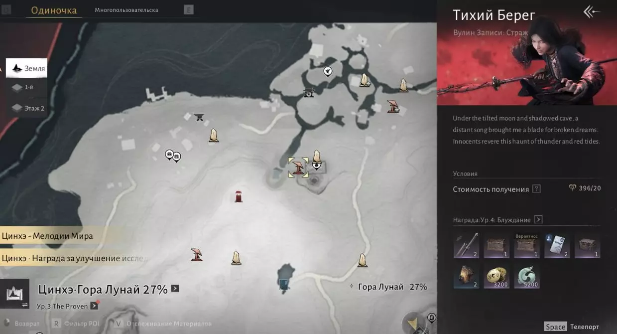 我们需要在沁河区域收集6000点探索点数,然后与打开该区域地图的男性NPC(地图上的篝火图标处)对话。探索点数可通过收集宝箱、解谜、完成任务以及地图上的其他活动获得。一旦满足条件,前往此处:
