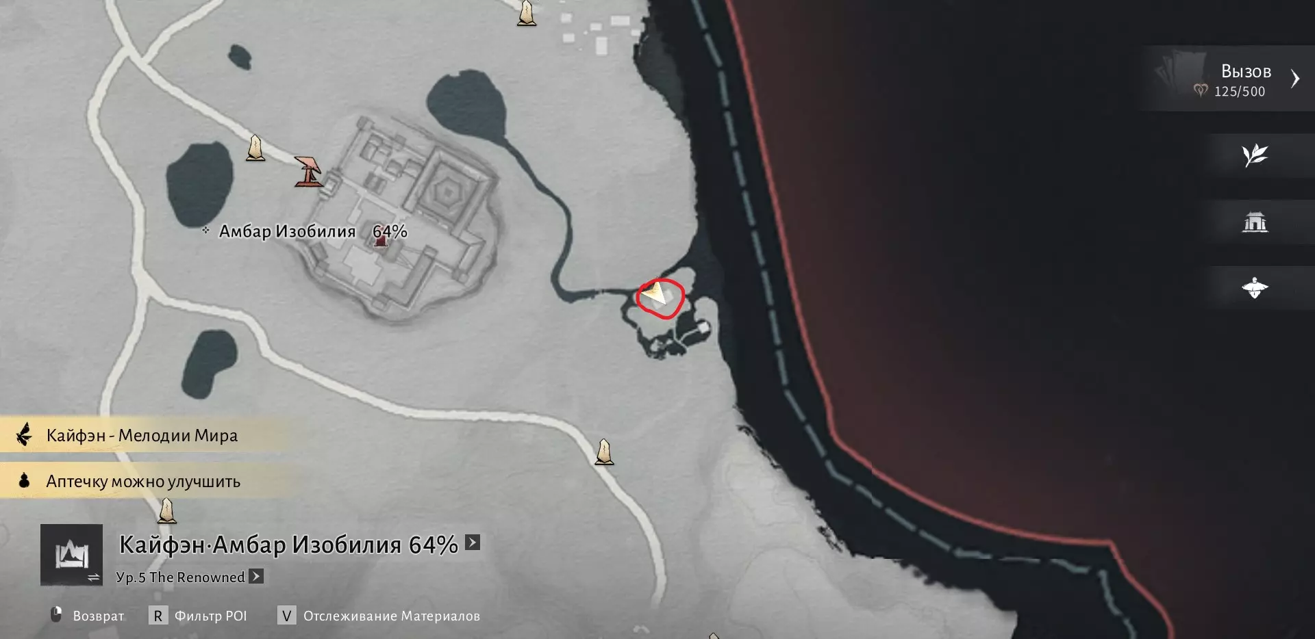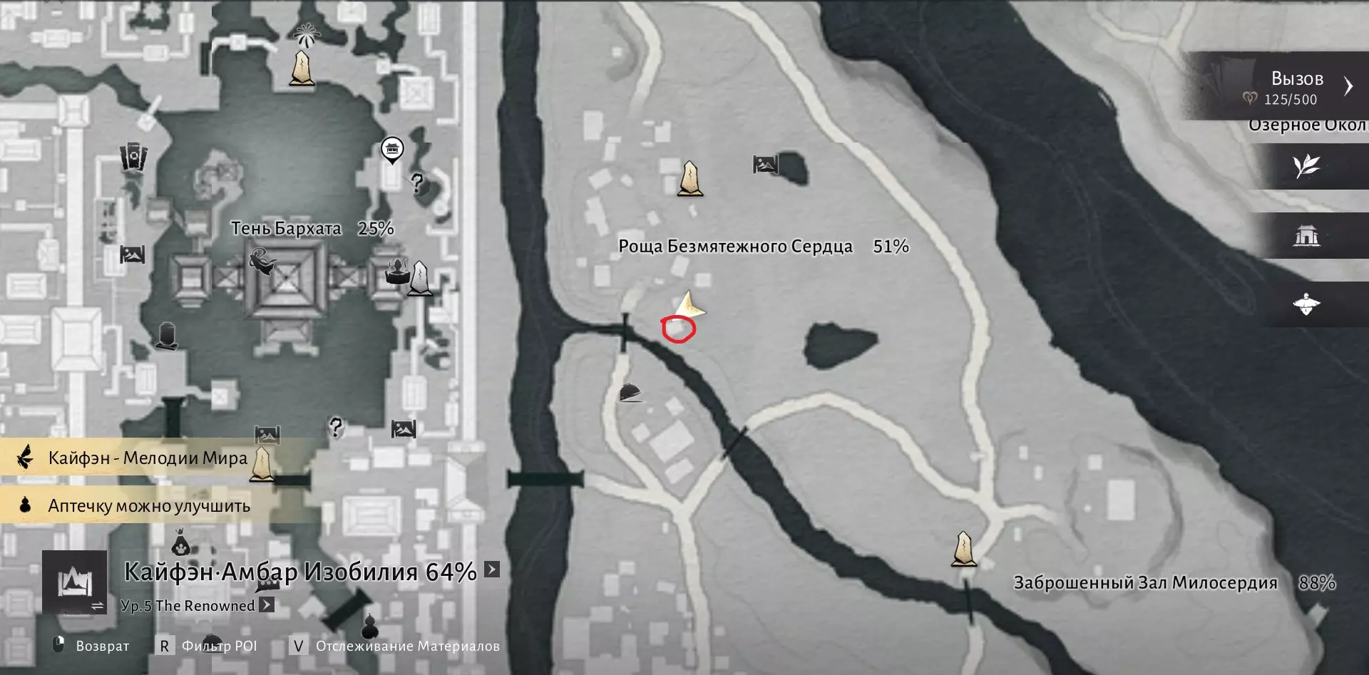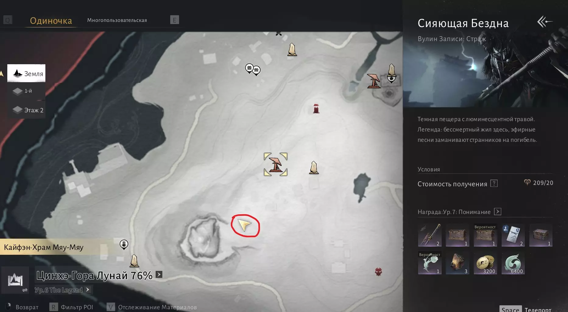 我们需要在沁河区域收集6000点探索点数,然后与打开该区域地图的男性NPC(地图上的篝火图标处)对话。探索点数可通过收集宝箱、解谜、完成任务以及地图上的其他活动获得。一旦满足条件,前往此处:
