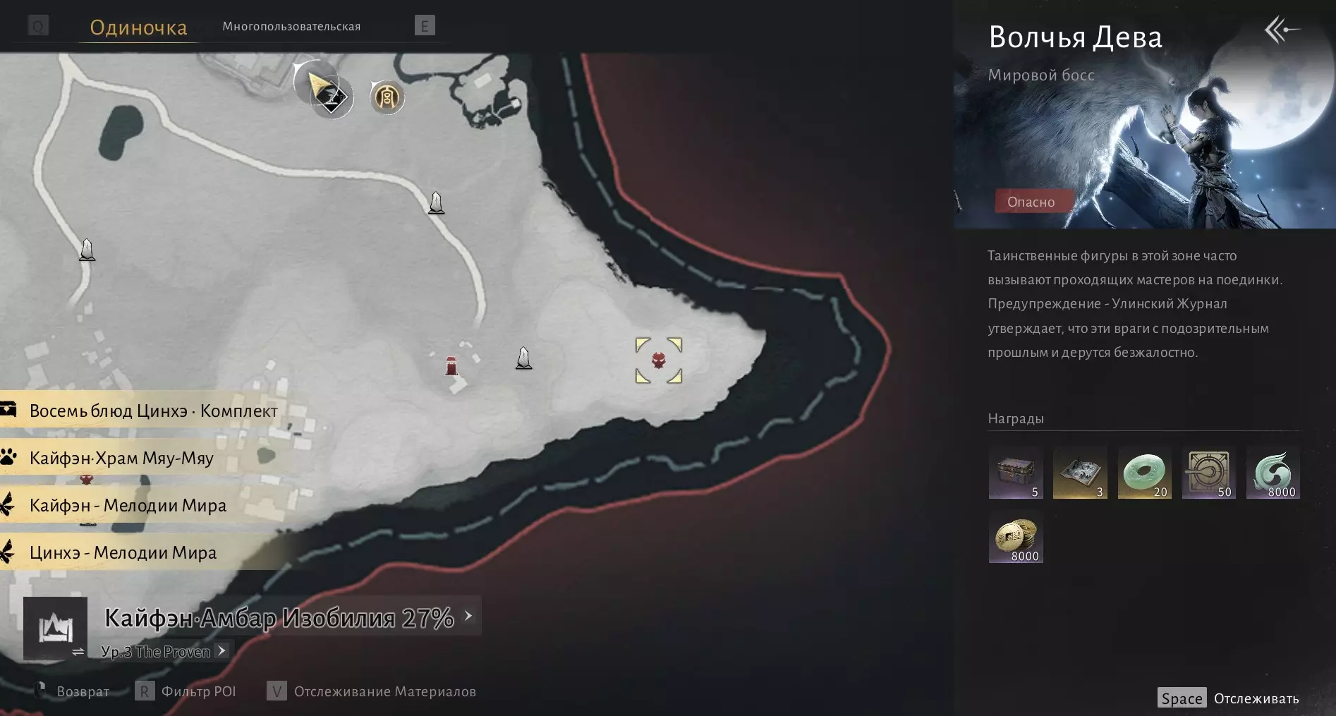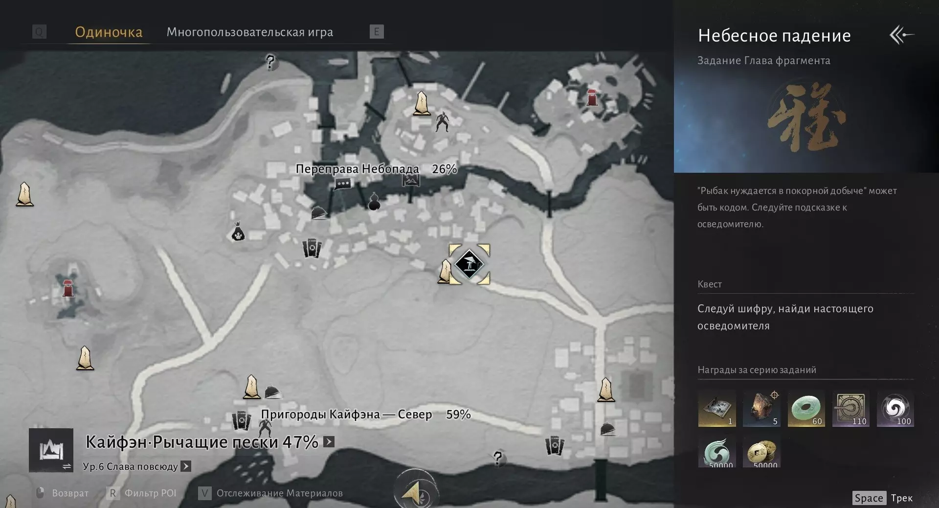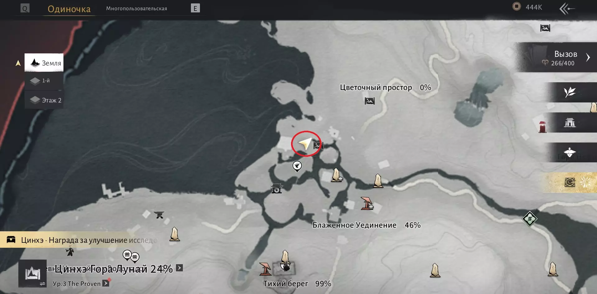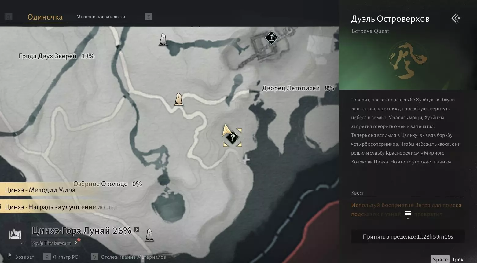我们需要在沁河区域收集6000点探索点数,然后与打开该区域地图的男性NPC(地图上的篝火图标处)对话。探索点数可通过收集宝箱、解谜、完成任务以及地图上的其他活动获得。一旦满足条件,前往此处: