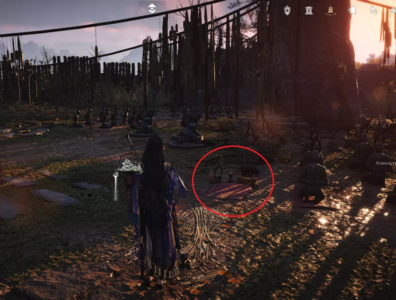 开始任务,与祈祷垫互动。坐下等待,直到事件开始。