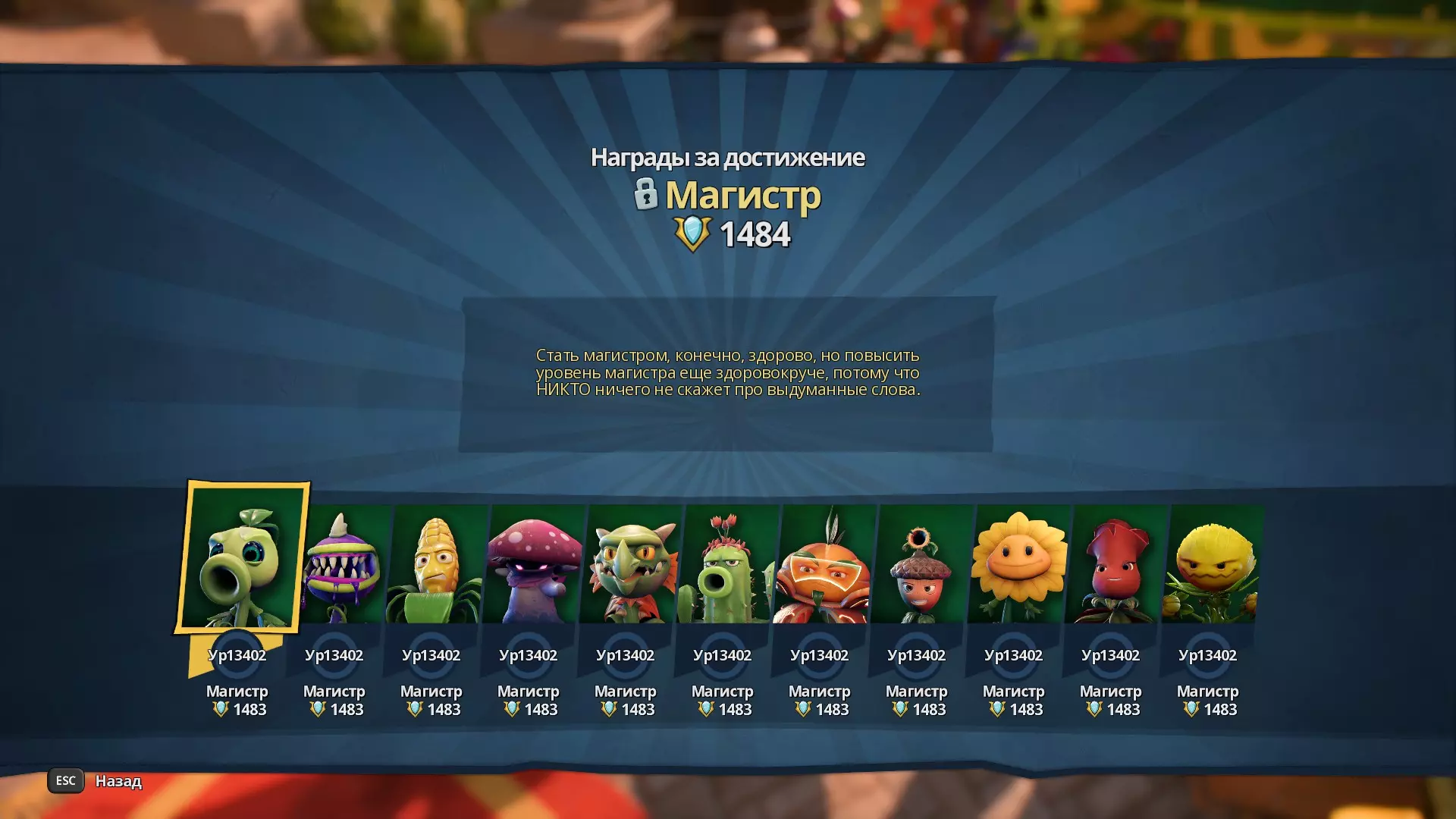 https://steamcommunity.com/sharedfiles/filedetails/?id=3261707870 Стосовно неї, якщо будете робити по моїй тактиці рекомендую крутити ці коробки вдачі лиш 2-3 рази і там по якомусь алгоритму вам відразу може впасти якась лєгєндарка, але це не точна інфа а моє спостереження, в основному там падає шлак тому не варто тратити гроші тим більше якщо є мета викачати персонажів. Отримувати круті костюми ви зможете і в Батл Пасі. Це все прикольно звичайно, але ж де мені брати гроші на цю машину з досвідом? Якщо ви новачок найкраще, що ви можете зробити це піти в сюжетки, там на кожному кроці дають валюту. Сюжеток в грі 4-ри штуки. В моєму випадку я грав за рослин по путно в сюжетці вивчав гру та кожного з персонажів, находив різні колекційні предмети та скрині з грошима-приколами для місцевого магазину. Проходив босів і так далі. Сюжетка це така собі велика карта з лутом, особисто як я робив. Брав до прикладу Цитрона як персонажа який мені не подобається, находив в інтернеті (або можна купити в грі мапу скринь) і просто бігав і залутував всі скрині, за відкриття скрині нам дають 250 досвіду + гроші чи іншу валюту сюжетки. І таким чином по трошку заробляв гроші і викачував персонажів якими майже не граю. Попутно виконуючи досягнення за медалі. ВАЖЛИВА ДЕТАЛЬ! Якщо ви не ПвПшер рекомендую, активувати ПЕРК на "Посилювач досвіду" особисто в мене як було, на ВСІХ зомбаках стояв цей перк, щоб качати бистріше і на деяких рослин. Він дає певний відсоток до отриманого досвіду + ще зверху. Тобто умовно відкриваючи скриню і отримуючи зазвичай 250 то цей показник буде вже 265 досвіду. Збираючи гномів і колекційні предмети, ми отримуємо досвід також по 250. Зібравши всі колекційні предмети чи гномів чи ще шось в цьому роді і підійшовши до персонажа сюжетного який нам дав ці завдання вони нам видаватимуть зверху ще гроші. Тому пилососячи сюжетки, виконуючи завдання і все інше ми будемо отримувати досить такі не маленькі кошти за короткий строк, у мене капітал був шось 2 міліона при тому шо я тільки за рослин пробігся по сюжетках не чіпаючи зомбі сюжетки (хоча й по цей день я їх не охоче закрив) 2 міліона це десь приблизно пальцем в небо 25 днів виходить і можна купувати кожного дня досвід. Думаю бігати іноді не веселі сюжетки нудновато, хочеться піти і в інші режими. З простого і прикольного це "Операції" там де є 5 хвиль з ботами і вам треба захищати штуку по центру мапи. Там все доволі просто, берете персонажа який вам подобається або не дуже за нього граєте, вбиваєте ботів отримуєте досвід і в кінці гроші, режим містить в собі 4 гравця тому часто ви самі грати не будете. Орієнтовно без точних цифр можна за одну катку в режимі "Операції" отримати 3500 тисяч досвіду і 12000 чи 17000 грошей в залежності який вам бос випаде на 5 хвилі. Стосовно ПвП качу та викачування "не зручних" персонажів Про ПвП тут трошки інша мова піде. За вбитого гравця ви будете отримувати 150 досвіду це така внушитєльна кількість досвіду відносно ботів чи ще чого. Але в ПвП є одна проблемка, це онлайн.. Тобто зустріти повну катку ну це прям ультра рідке явище, може в якусь спеціальну годину і збирається така кількість гравців, повна катка це означає, що прокачка піде краще в рази (це при умові якщо ви вмієте грати в ПвП катках) але теж є свої мільярд нюансів. Можна і в звичайні бігати режими, але я особисто рекомендую не пропускати режими коли вони "івент ти