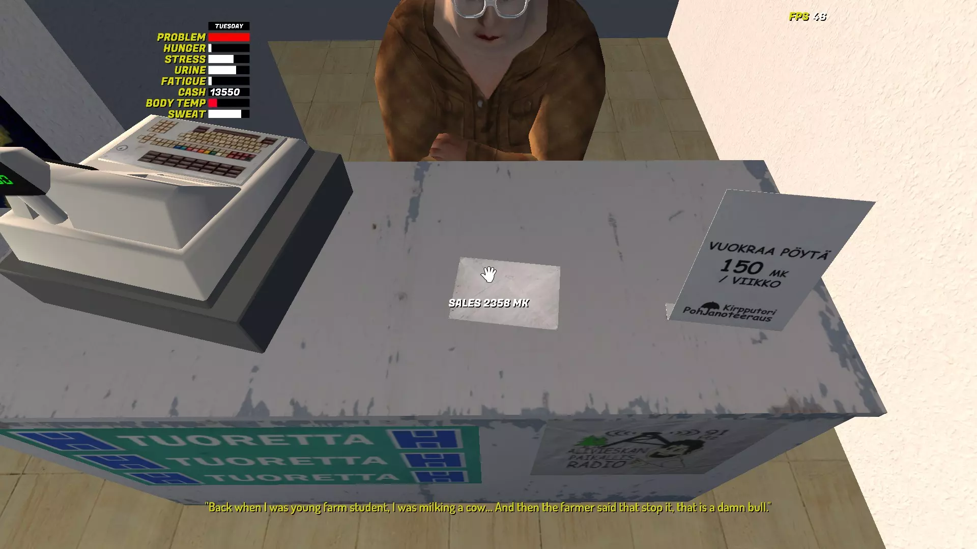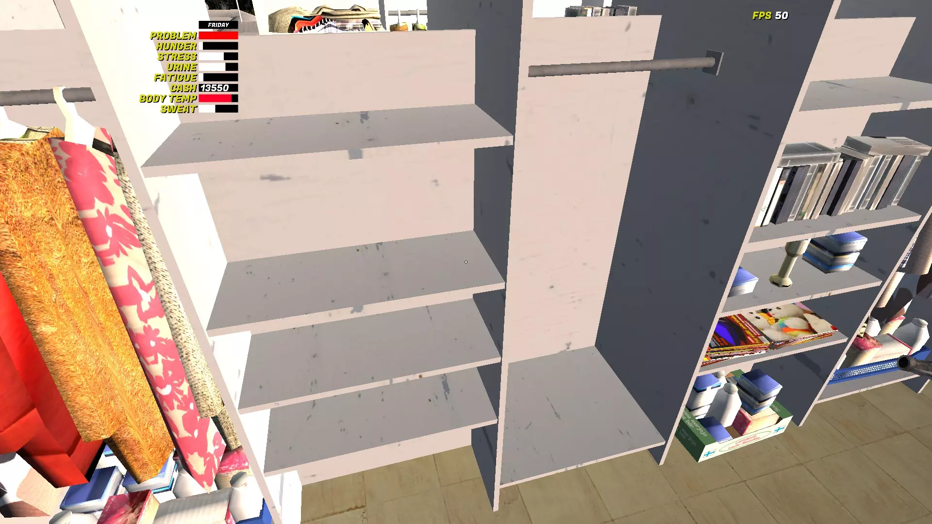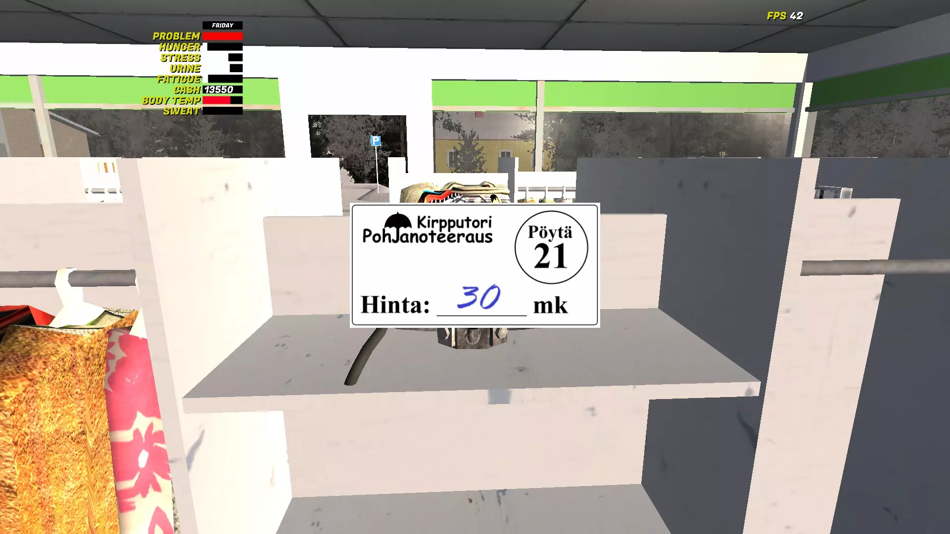 旁边的衣柜架子也是你的,你也可以在那里放置待售物品。 要出售物品,需将其放在桌子上。确保物品放置妥当,不会掉落。 如果物品能留在桌子上,就会出现一张纸,你可以在上面输入物品价格。 【定价和销售机制的相关信息将在本指南后续内容中说明。】