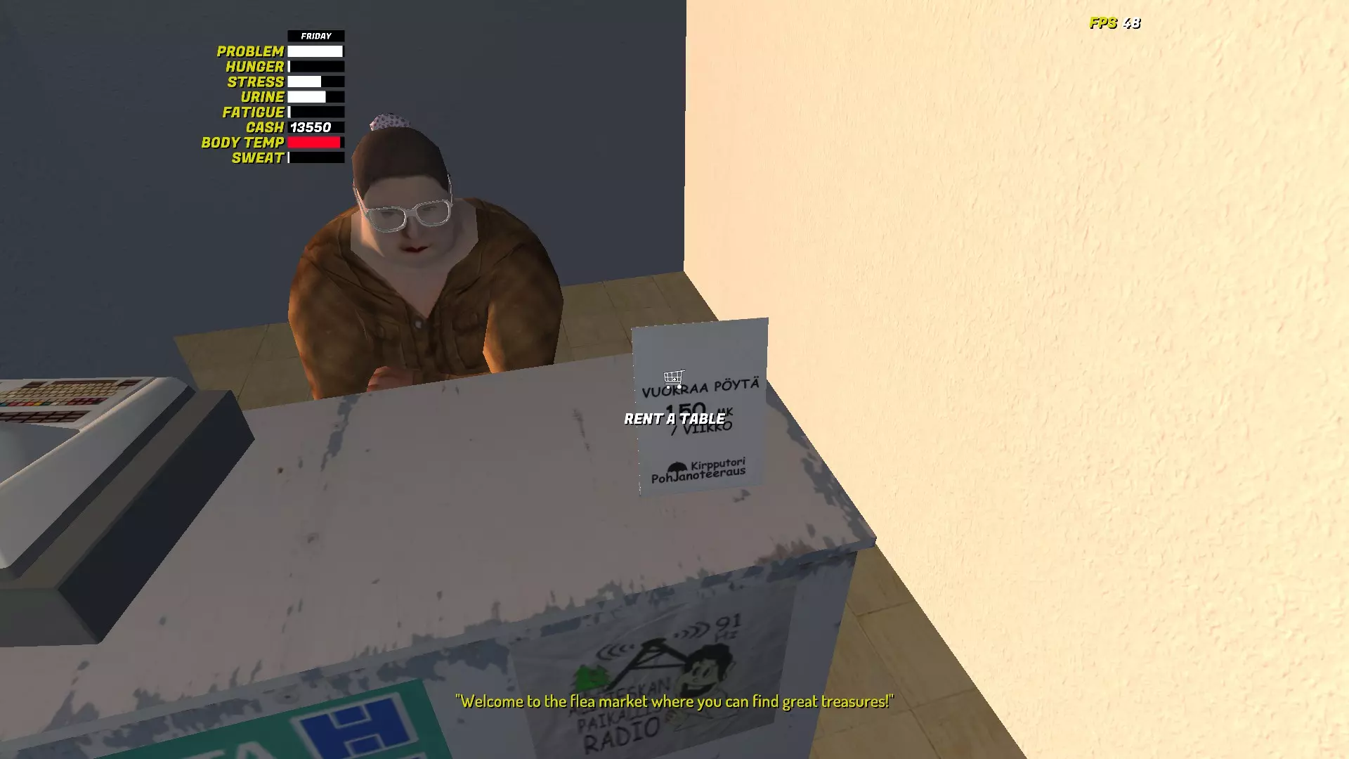 2. 租用摊位 在跳蚤市场内,你会看到一个坐在桌子旁的女人。 你可以向她租用一个为期7天的摊位,费用为150马克,用于出售你的物品。