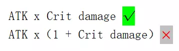 所有敌人都拥有【最终减伤】属性,其数值随等级提升而增加。 由于敌人必定存在【最终减伤】,且该数值在乘法公式中以相减形式计算,因此【最终增伤】能显著提升伤害输出。 7. 暴击伤害(Crit damage) 暴击伤害是常见的乘法词条,需注意其计算公式为:攻击×暴击伤害,而非攻击×(1+暴击伤害)。暴击伤害是一种非常常见的“倍率计算术语”,但有一个注意事项:计算时的公式为“攻击力×暴击伤害”,而非“攻击力×(1+暴击伤害)”。