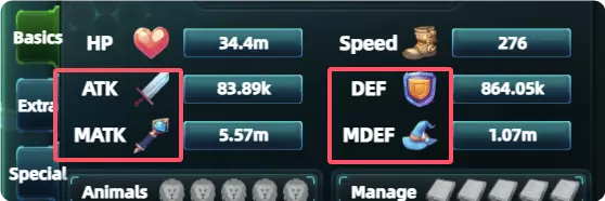 攻击力分为两种:物理伤害(ATK)、法术伤害(MATK)。