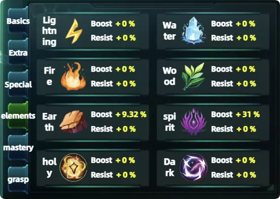 物理或法术增伤、普通攻击增伤 3.元素类【elements】