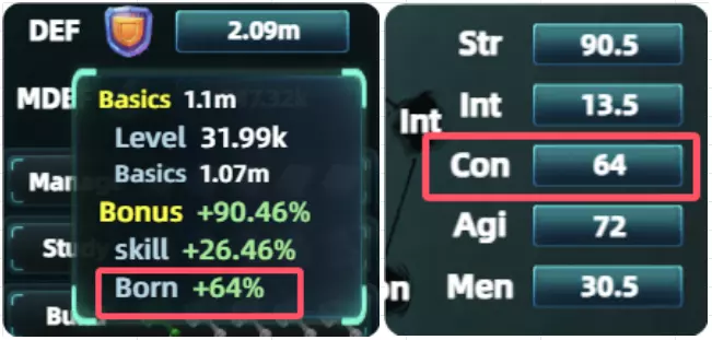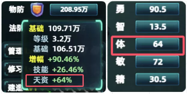 计算公式为:(攻击或法术+装备)×(力量或智力+技能被动)×职业 3.防御力(DEF)和攻击一样,防御也分两种。