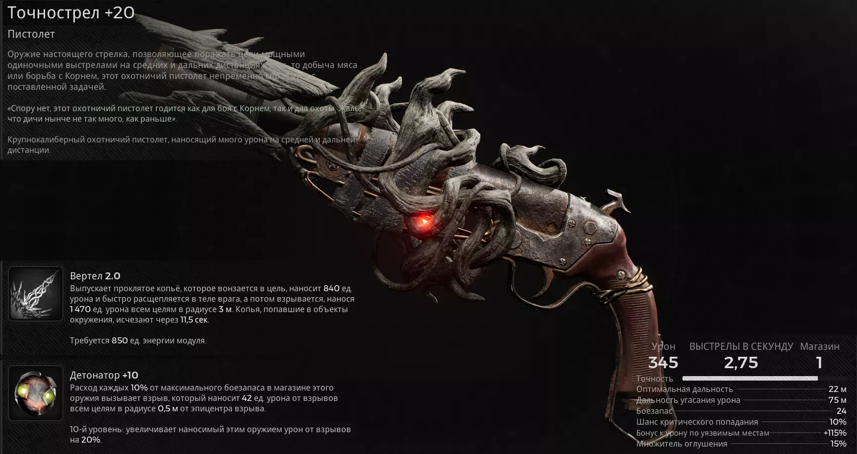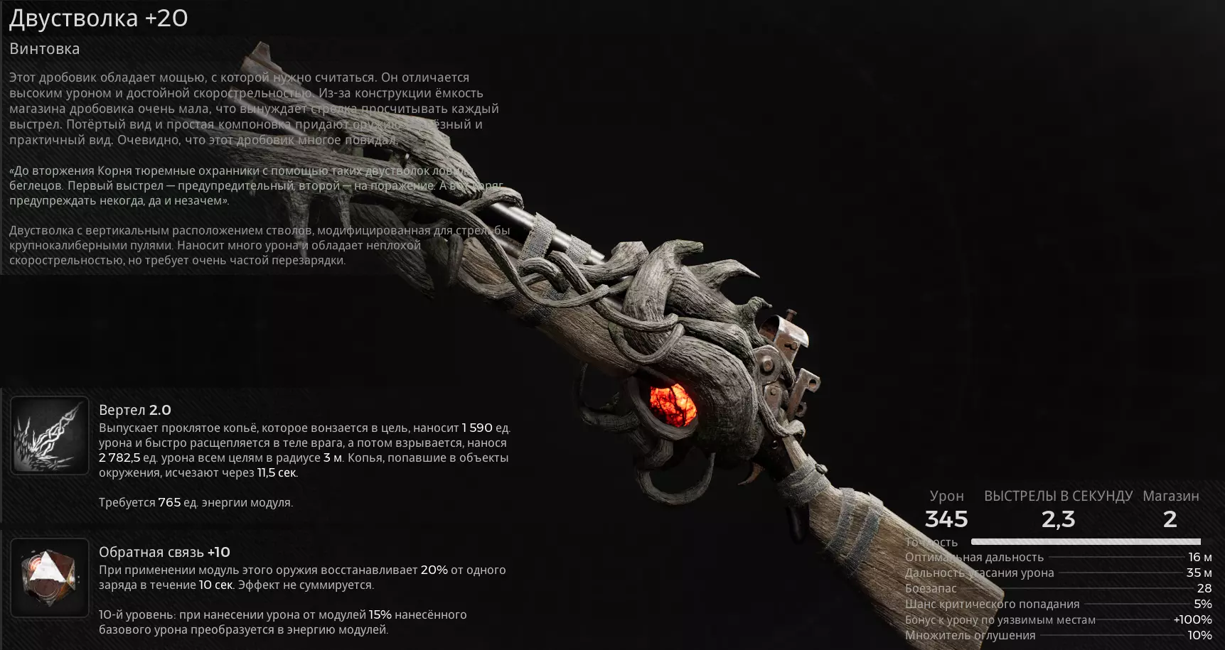 武器 主武器 - 双管霰弹枪。 模块 - 旋翼 2.0。 突变体 - 反馈。