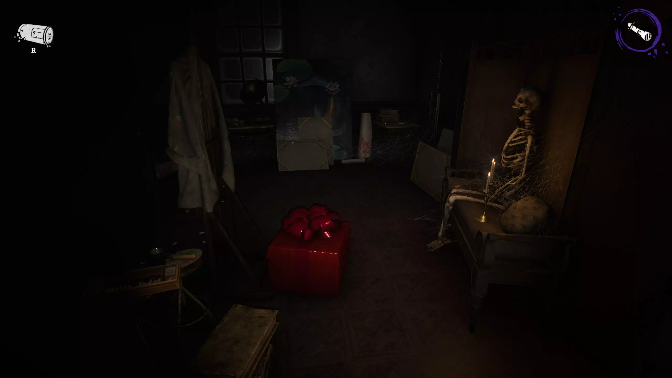 6. 在绘画室(楼上)的骷髅前面