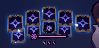 紫霄随机获得【星相】并召唤三张卡牌守护自身。卡牌会追踪准星指向的敌人,同时也会自动追踪7米范围内的敌人。每张卡牌可造成500点基础伤害。卡牌在释放前会持续存在,且释放的卡牌和追踪效果均会被墙体阻挡。 初始卡牌持有上限为10张(即紫霄身前最多可悬浮10张卡牌,需与次级技能容量区分开),通过突破可提升至最高20张。若超过持有上限,使用【星象预测】将不会增加持有卡牌数量,仅会再次获得【星相】。