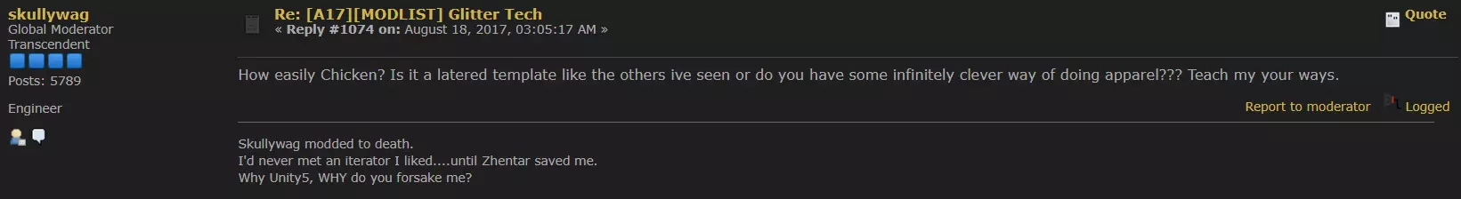 2017年8月24日更新 - 我已更新附件文件,并加入了服装制作的基础模板。 关于为何我只有用于盔甲和外套的绿巨人身体基础模板,原因是我总是从绿巨人模板开始制作,之后会使用已完成的绿巨人纹理副本添加或删除细节。指南中已展示相关示例。 简介 大家好,我是Chicken。 我为《环世界》制作过一些服装模组,我的好友——超级著名的电影明星Skullywag想知道我是如何快速制作服装的。