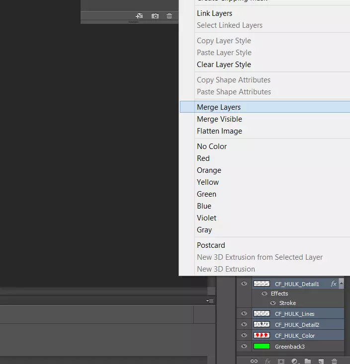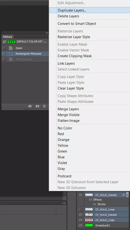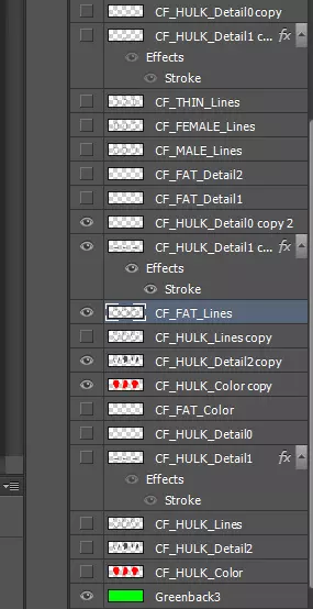 现在我们要复制所有高亮显示的绿巨人细节和颜色图层。