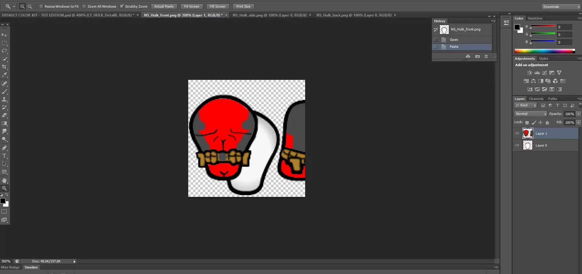 第一步,放大图像文件,确保浩克身体轮廓处于可见状态,而其他轮廓不可见。这些轮廓的尺寸正是《环世界》所要求的,如果你要自行制作,请确保尺寸正确。