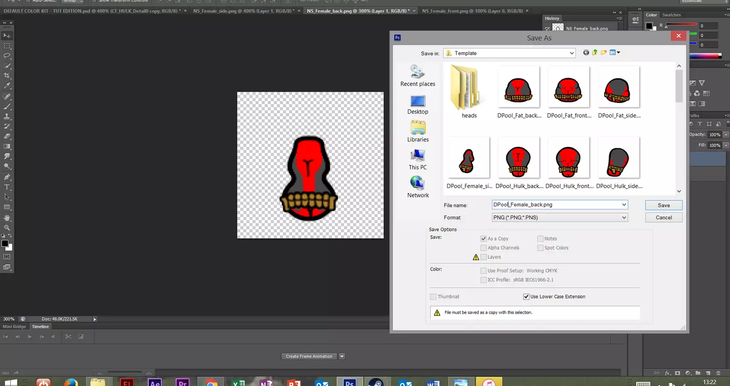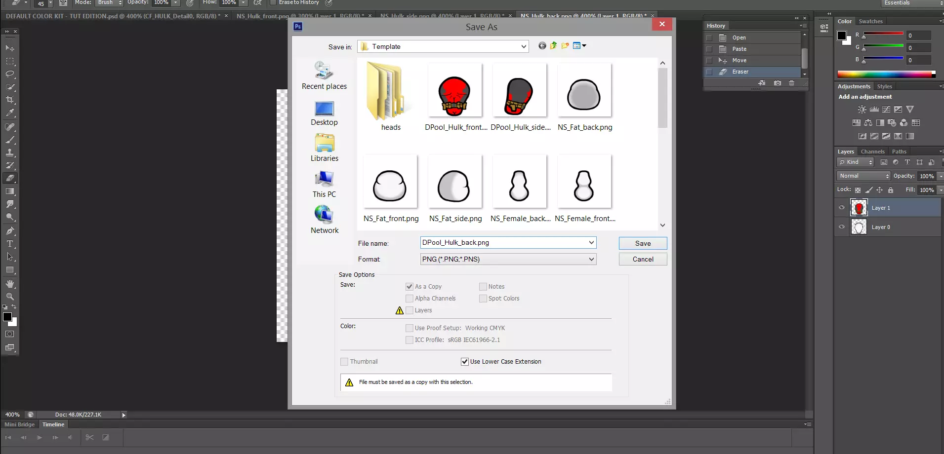 等我把所有内容都调整好之后,就可以关闭模板图层,或者保持原样并擦除任何不希望在最终作品中显示的多余内容。确保正确命名文件,避免意外替换任何内容,并且务必保存为PNG格式,因为PNG文件支持透明度。