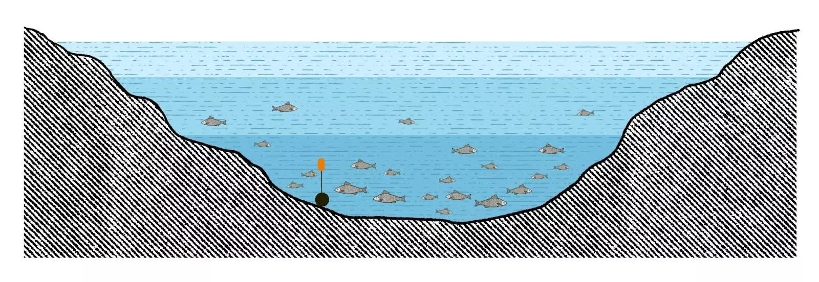Zig-rig基本信息 Zig-rig 不同天气条件会导致水温变化。在低温环境下,鲤鱼会游到被阳光晒暖的上层水域和水面层。这种情况下,使用Zig-rig装备能获得最佳效果。Zig-rig使用特殊的漂浮泡沫作为诱饵,凭借其浮力,能轻松将诱饵呈现于子线设定的深度。为了在水体中搜索鲤鱼,最有效的方法是使用多根不同子线长度的鱼竿,例如以30厘米或50厘米为增量。这能提高诱饵在鲤鱼最活跃的正确深度出现的可能性。但即使在正常天气条件下,Zig-rig钓组也可以成为传统底钓钓组的替代选择,尤其是在底部复杂的水域垂钓时,例如淤泥底或有水生植物的水底。此外,鲤鱼可能对彩色泡沫饵非常感兴趣,这种饵料与周围环境形成明显对比。 制作Zig-rig钓组的子线时,建议使用尼龙钓线。尼龙线具有正浮力,这对该钓组的设置极为重要。 1.水表区域
