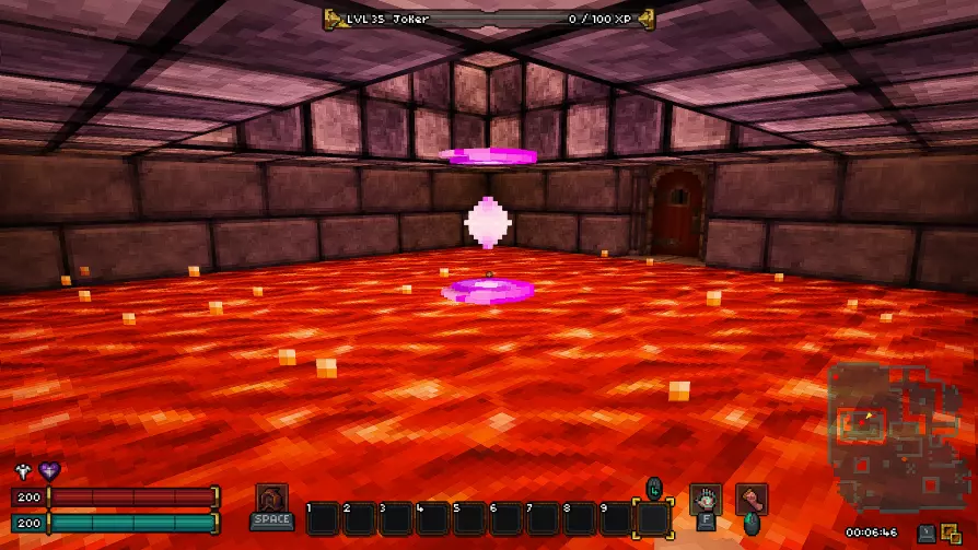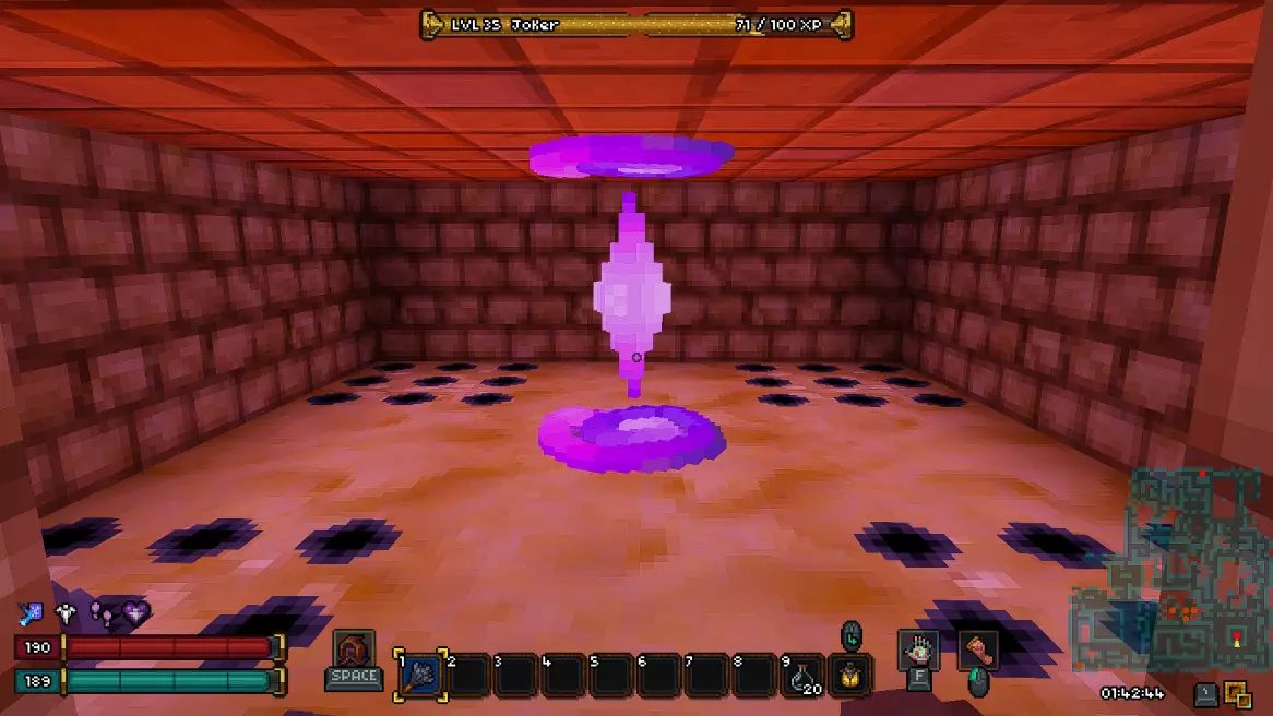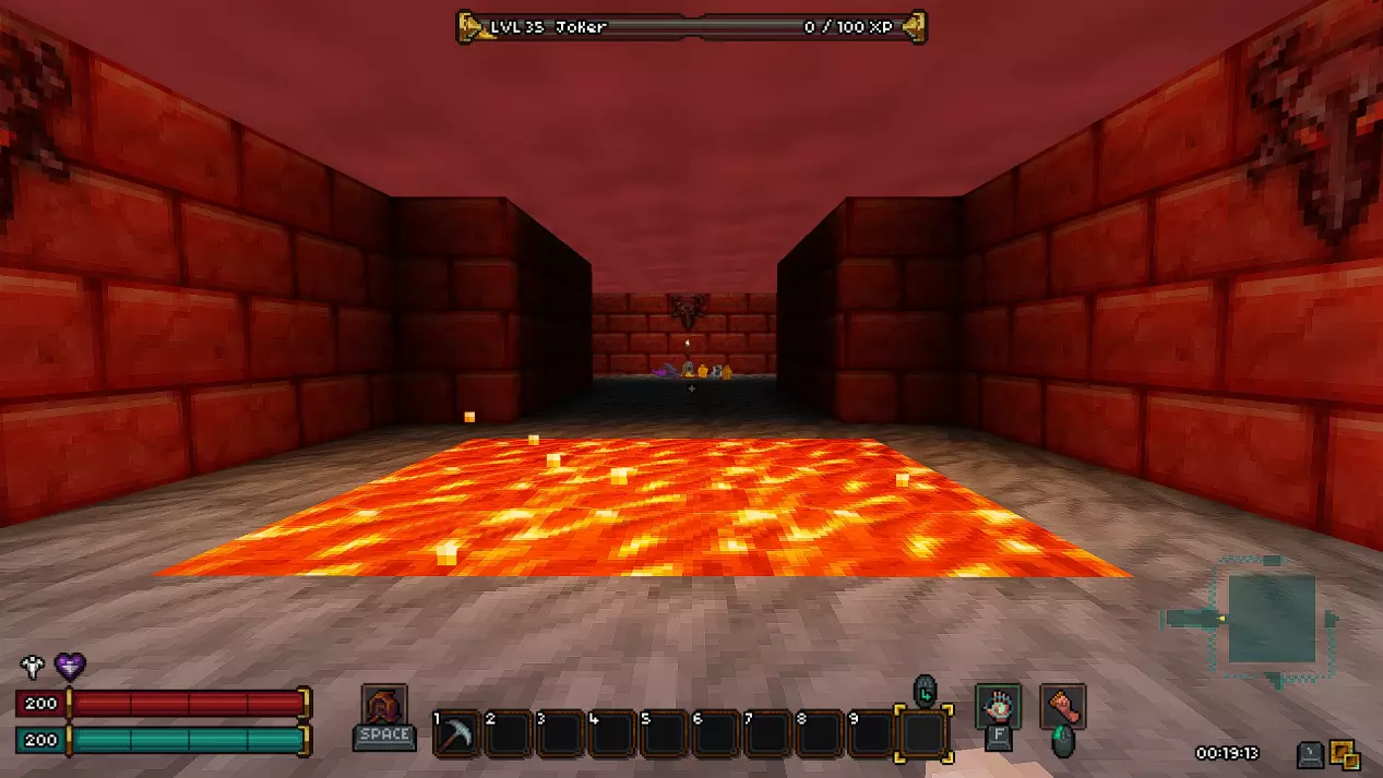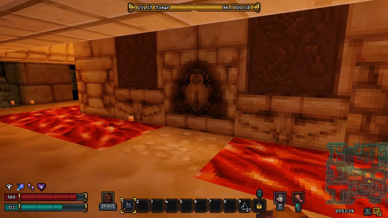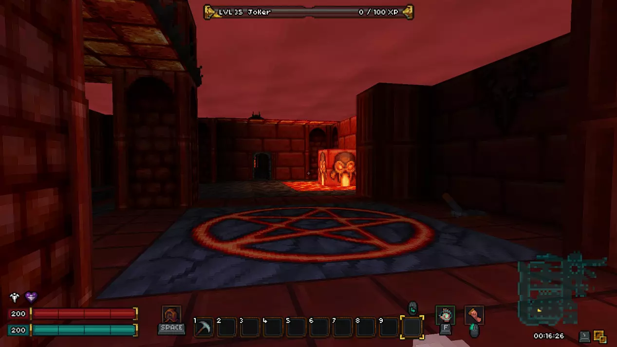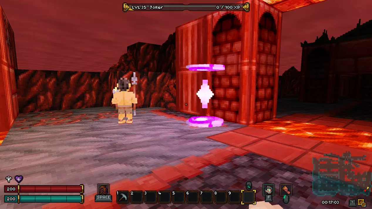 第十八层 - 废墟 在这一层同样有一个秘密房间,我强烈建议你在首次游玩时不要进入。 接下来会有非常大的剧透,所以如果你是第一次玩游戏,请继续沿着废墟前进,直到新的传送点。 而对于那些仍然决定冒险一试的人,欢迎来到异次元!(提示:秘密机制与上次相同,涉及拉杆和熔岩房间。)在这个区域,我们的目标是利用带有骷髅的祭坛移动到通往下一层的舱口。传送后,你可能会被一群怪物围攻,所以请务必小心。
