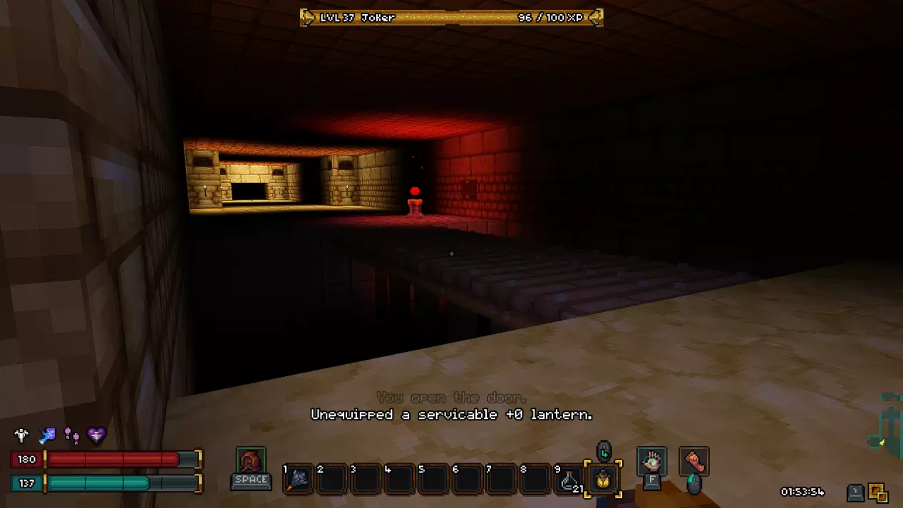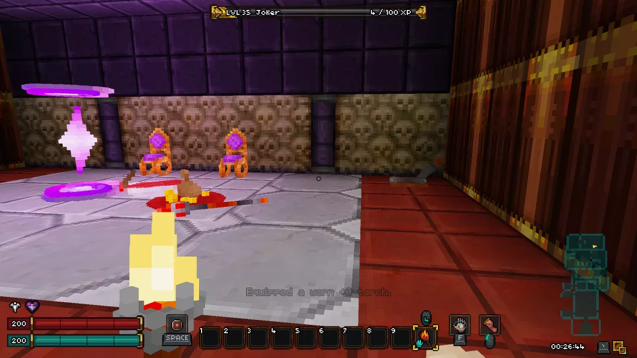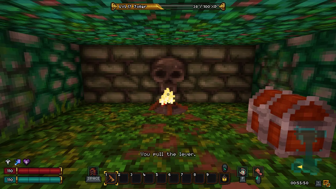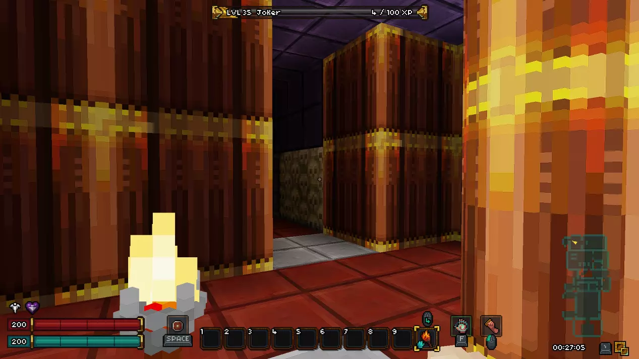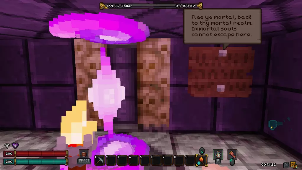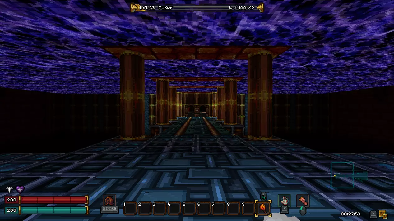 第十八层 - 废墟 在这一层同样有一个秘密房间,我强烈建议你在首次游玩时不要进入。 接下来会有非常大的剧透,所以如果你是第一次玩游戏,请继续沿着废墟前进,直到新的传送点。 而对于那些仍然决定冒险一试的人,欢迎来到异次元!(提示:秘密机制与上次相同,涉及拉杆和熔岩房间。)在这个区域,我们的目标是利用带有骷髅的祭坛移动到通往下一层的舱口。传送后,你可能会被一群怪物围攻,所以请务必小心。