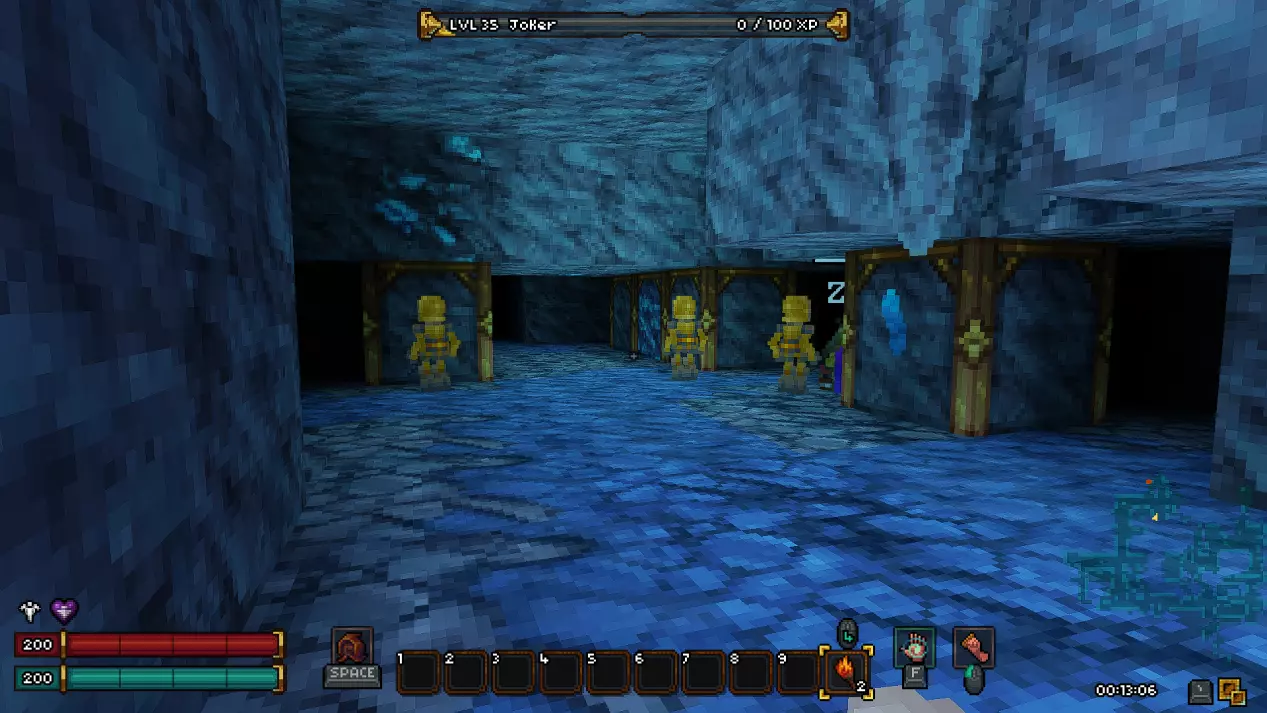 从二楼通过普通活板门的能力不会消失。在矮人矿井探险后,你将到达三楼。 矮人矿井(秘密地点) 轻微剧透! 该地点是一个巨大的迷宫,我们的目标是在其中生存并找到 artifact。地点内会有大量敌人,并且总会有一个带有商人的商店。此外,在关卡中除了普通墙壁外,还会有带有金色纹路的墙壁。 此类墙壁示例: