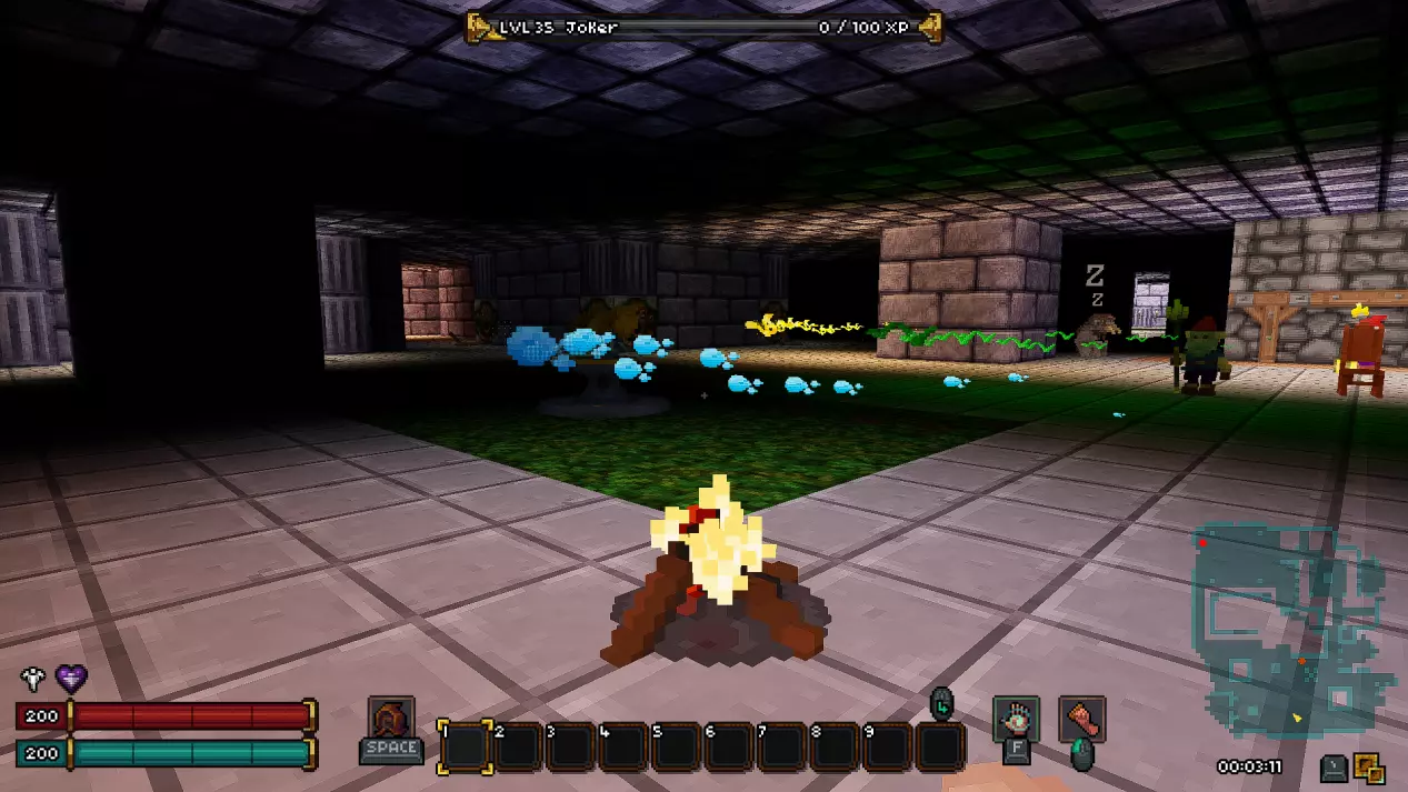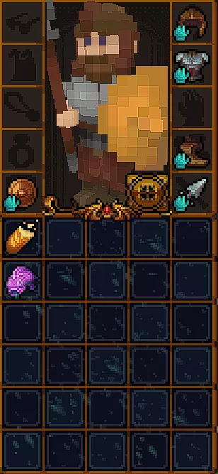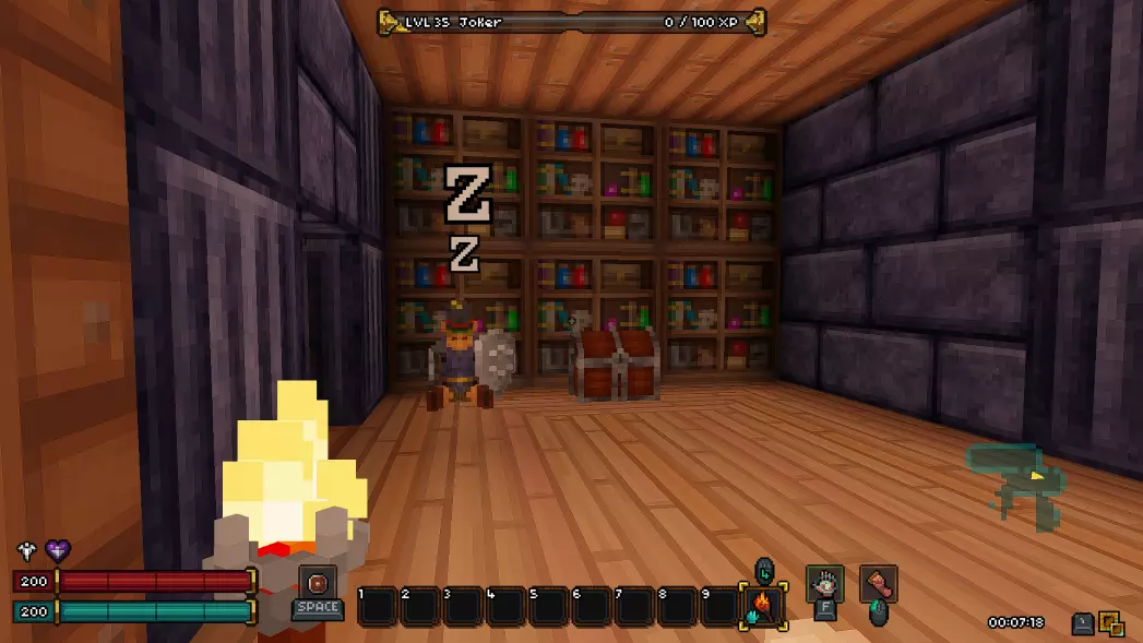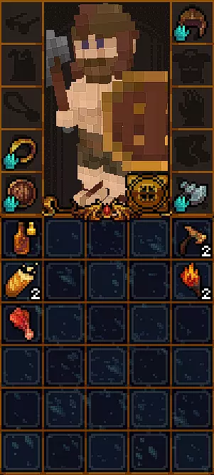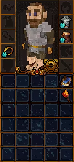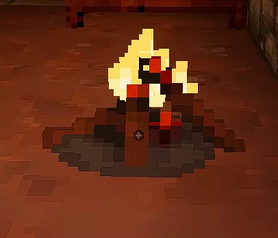 与它们互动时可能会发生两种情况。 1) 会弹出文本,其中会有一些文字,例如【R.I.P.】。 2) 坟墓里会爬出一只食尸鬼,它会对玩家抱有敌意。食尸鬼比(从水龙头里爬出来的)史莱姆要强得多,所以面对坟墓时要小心。 篝火 有时在楼层中可以找到篝火。它是良好的火把来源,其自身也会发光,有助于看清附近的怪物。 在篝火上可以烹饪食物,但需要平底锅,而平底锅很难找到。 篝火: