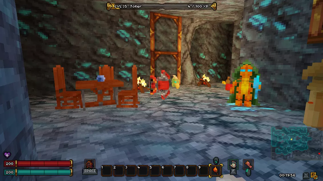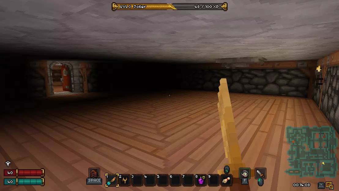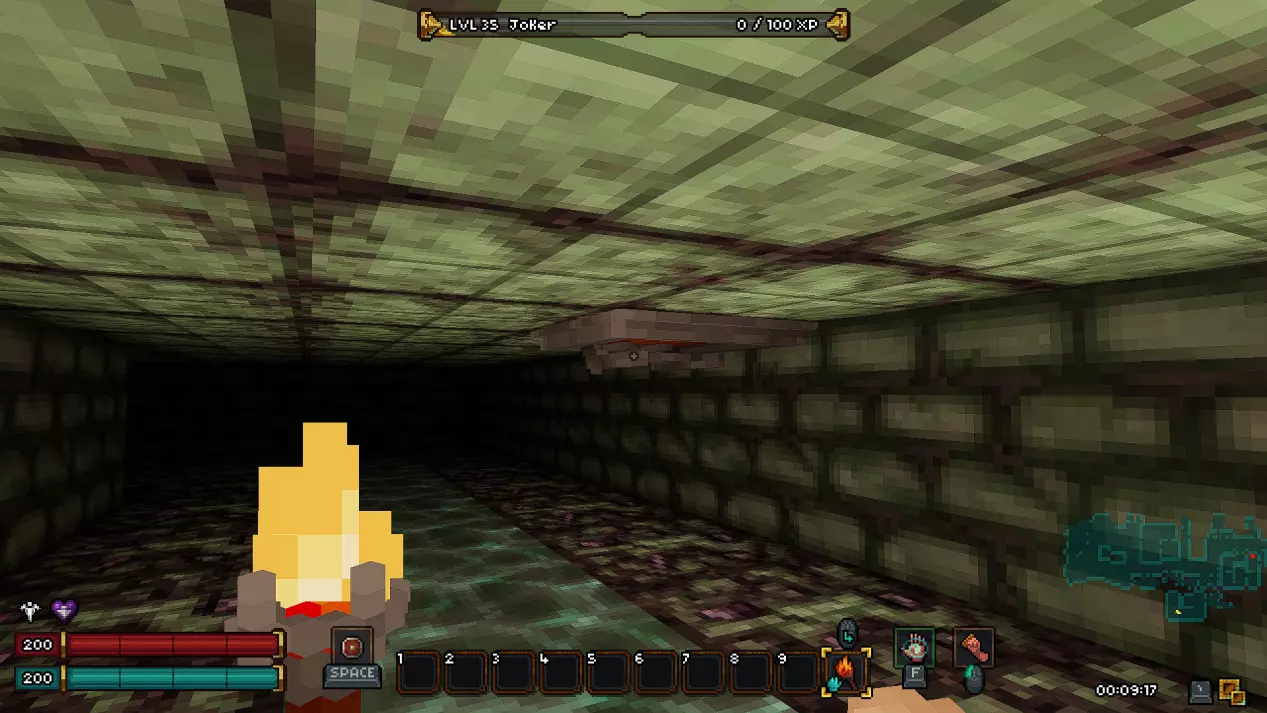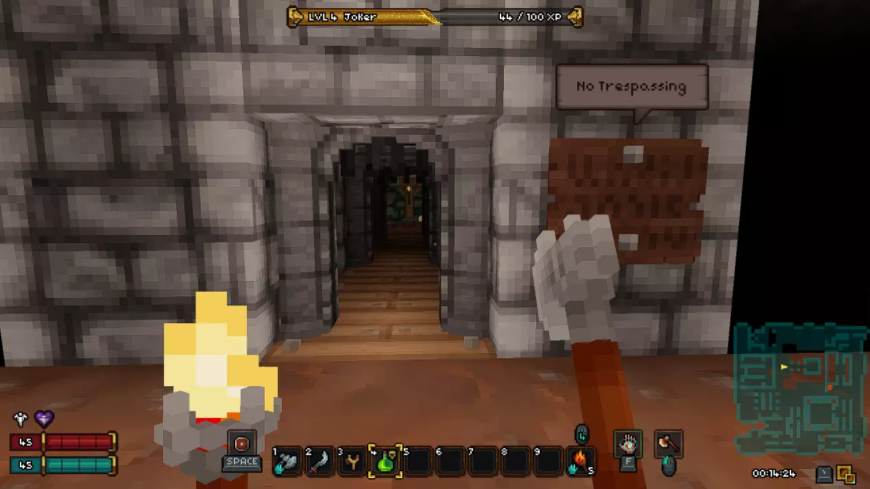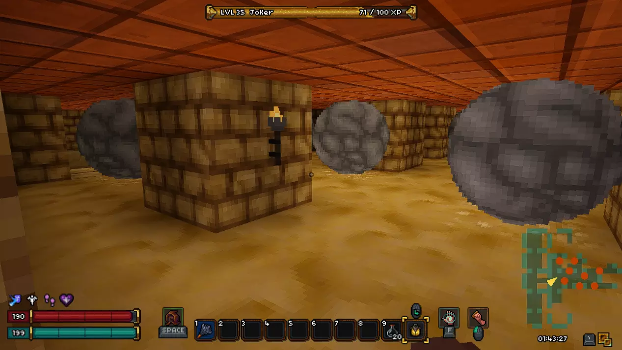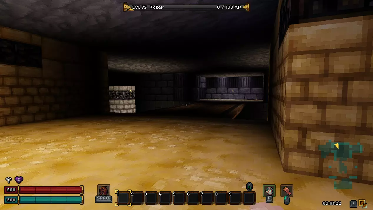 如果你担心剧透,可以直接跳过本部分,我已尽量合理组织内容,确保你不会错过任何信息。 《Barony》的第一个关卡——矿井 进入地下城后,我们会从一个起始房间开始,房间顶部有一个活板门,但角色无法通过它向上攀爬,此外房间里还有几根火把。
