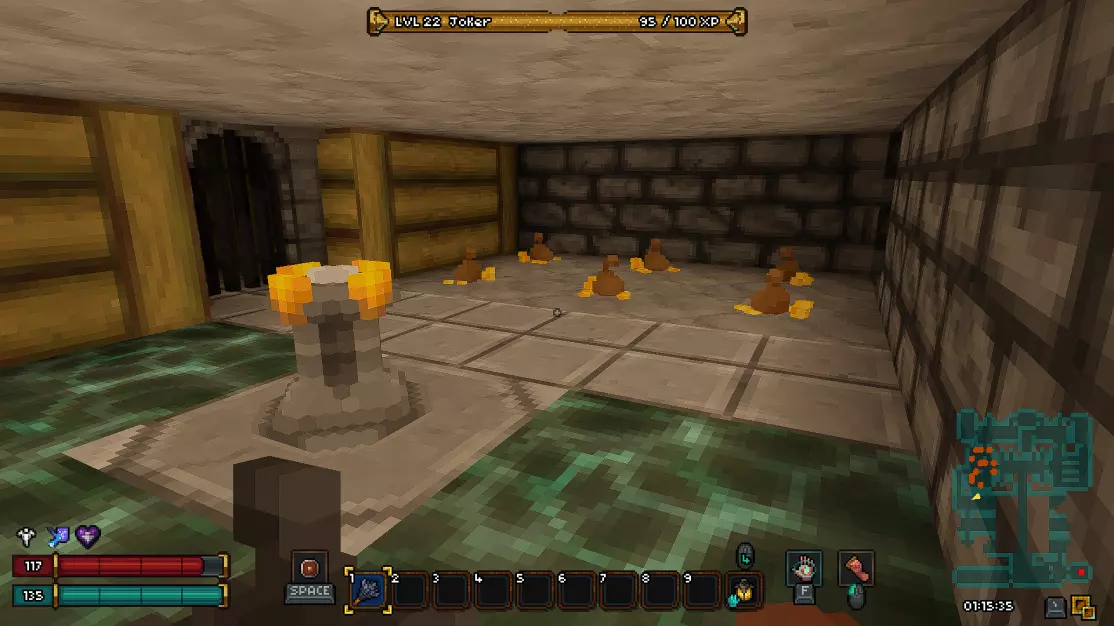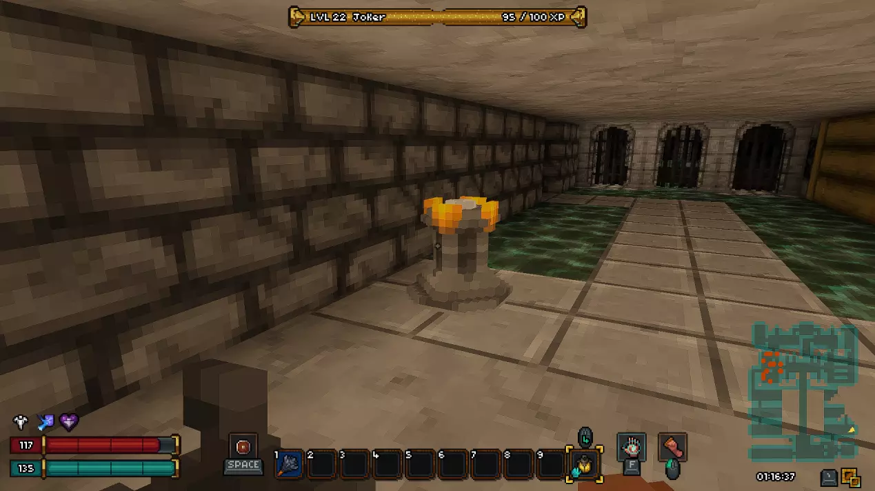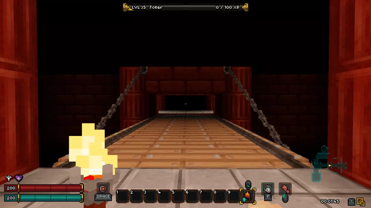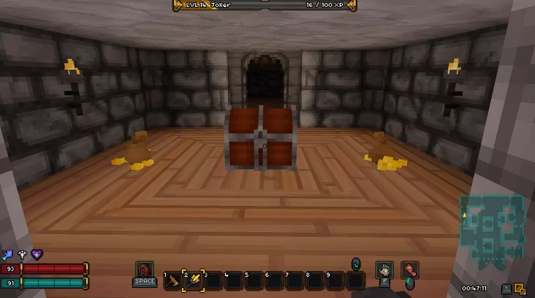 过渡区域是一个小型楼层,在这里你可以找到两个宝箱和通往下一层的活板门。这里还有一个秘密。要进入秘密区域,你需要打破带有骷髅头的墙壁。