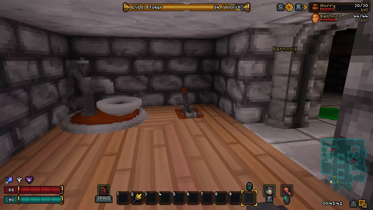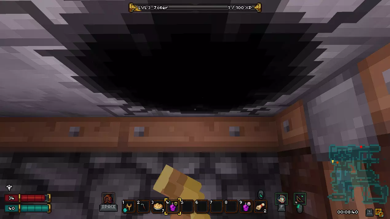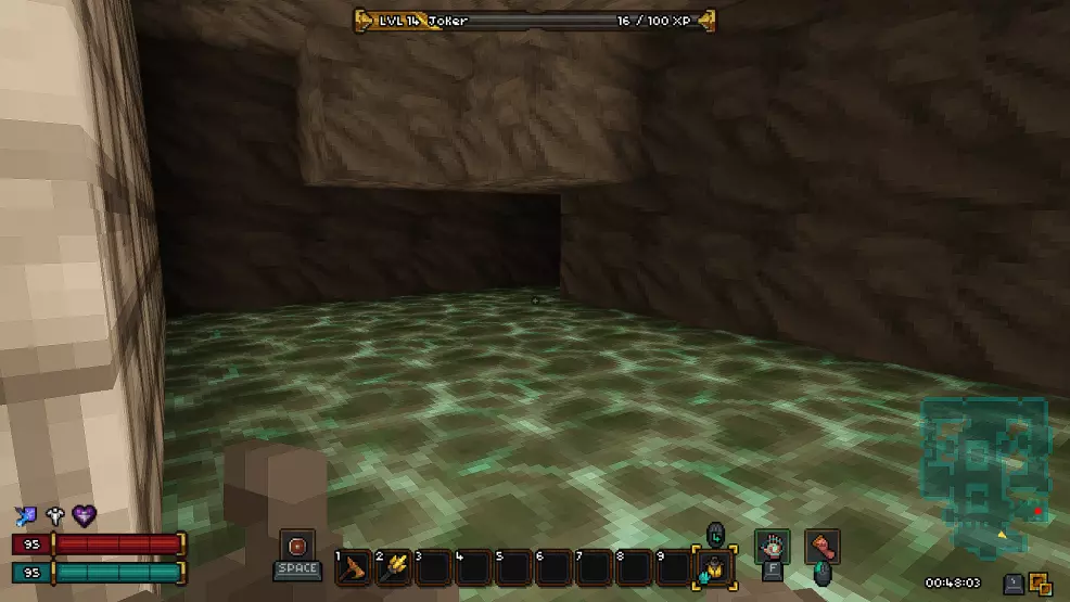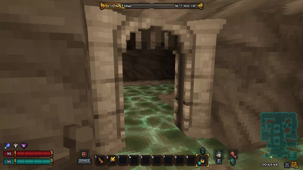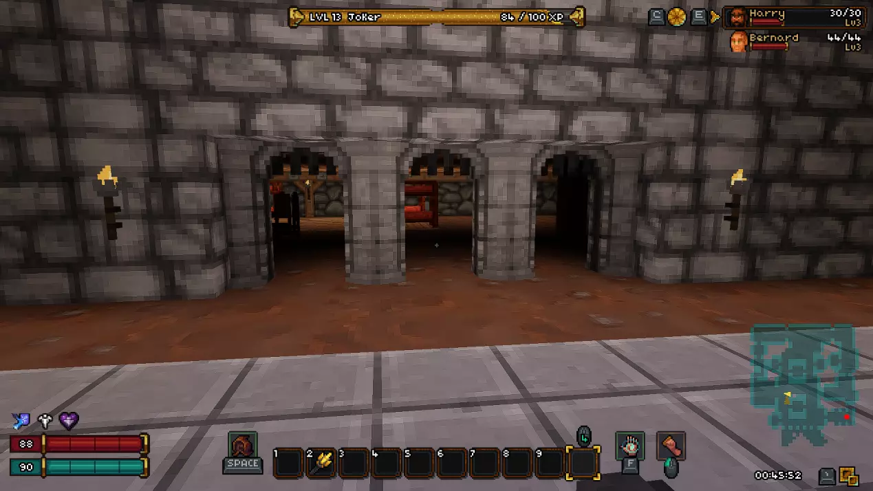 过渡区域是一个小型楼层,在这里你可以找到两个宝箱和通往下一层的活板门。这里还有一个秘密。要进入秘密区域,你需要打破带有骷髅头的墙壁。