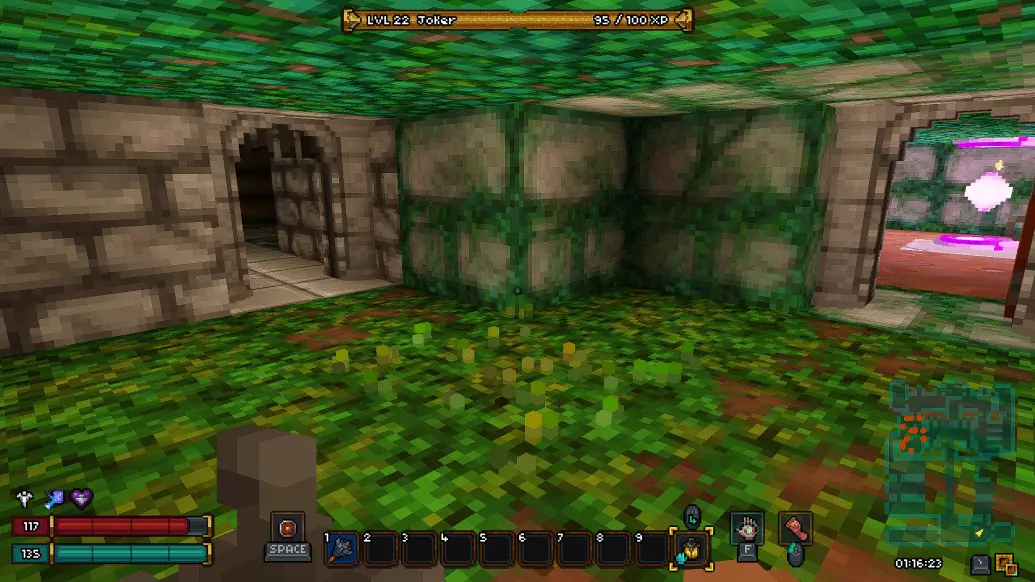 如果我们经过或站在它前面,就会被箭射中。可以用拉杆关闭它,或者往它下面扔物品。 第七层 - 沼泽 在第七层的沼泽中可以找到这样一个房间,里面会有一个传送门,能把我们带到秘密地点。