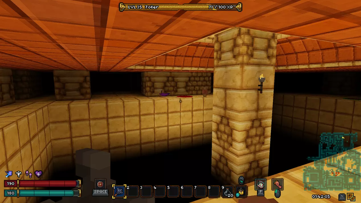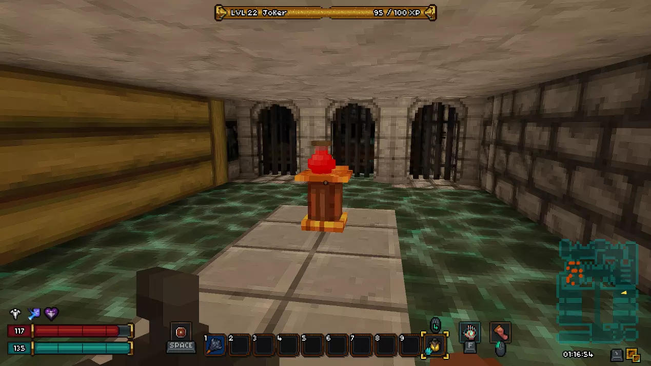 如果你不确定能否战胜弥诺陶洛斯,那么可以选择避免战斗,但这也并非易事。迷宫的角落里散布着速度药水,它们能帮你更快地穿过迷宫。 杀死弥诺陶洛斯后,你可以放松下来探索迷宫。 我们的目标是到达迷宫尽头,并将红色球体放置在基座上。