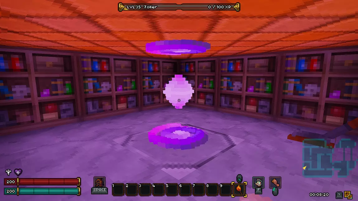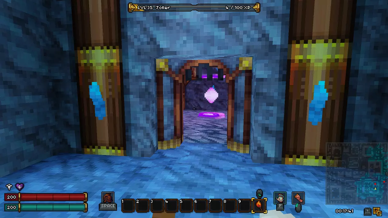 完成这个区域的所有任务后,就可以大胆进入传送门了。它会在一些操作后出现在大房间里。要打开传送门,你需要将紫色球体放入祭坛。