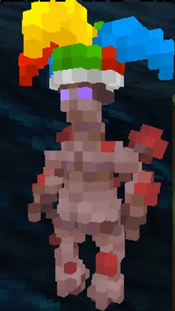 拥有抗性:远程战斗、近战和长矛。 拥有弱点:火焰、斧头、剑和魔法。 人类和树精对树精友好。 初始拥有两个法术: 1)尖刺 - 对攻击你的目标造成伤害。使用后每6秒消耗1点法力。 2)种植灌木(该法术的施法与独特的开花机制直接相关) - 在你选择的位置种下灌木。灌木每次释放脉冲可恢复7点生命值,并通过尖刺进行反击(我猜测灌木的机制应该和工程师的假人相似,即吸引敌人攻击自身,但如果敌人已经发现你,灌木就无法转移敌人的仇恨。要让敌人开始攻击灌木,要么敌人尚未发现你,要么将灌木放置在狭窄的走廊中,使敌人无法穿过灌木)。破坏灌木丛后会掉落种子,食用种子可以恢复饥饿值。 独特的开花机制:每次提升等级时,角色头上会长出植物(如果戴着头盔,则不会长植物),或者在喝水时有一定几率长出植物。最多可达到3个等级,每个等级都有不同效果。 1级 - 力量+10%,法力回复+10%,移动速度-5%,火焰附加伤害+5%。2级 - 力量+20%,法力回复+20%,移动速度-10%,火焰额外伤害+10%。 3级 - 力量+30%,法力回复+30%,移动速度-15%,火焰额外伤害+15%。 只有当角色头上长出东西时才能使用【生长】法术(头盔中“无法长出东西”)。每次最多可放置3个草丛,每个草丛消耗1级开花等级。树精有高、矮两种体型(可通过选择男性/女性性别来设定)。矮体型树精使用水后头顶长出植物的概率更高,同时拥有+5%的闪避率。但他们无法看到门上的观察孔,这常常导致无法查看带锁的宝箱内部。 13) 菌人 菌人是行走的蘑菇,敏捷属性提升速度降低20%,商人对菌人更友好。 菌人在《Barony》中——
