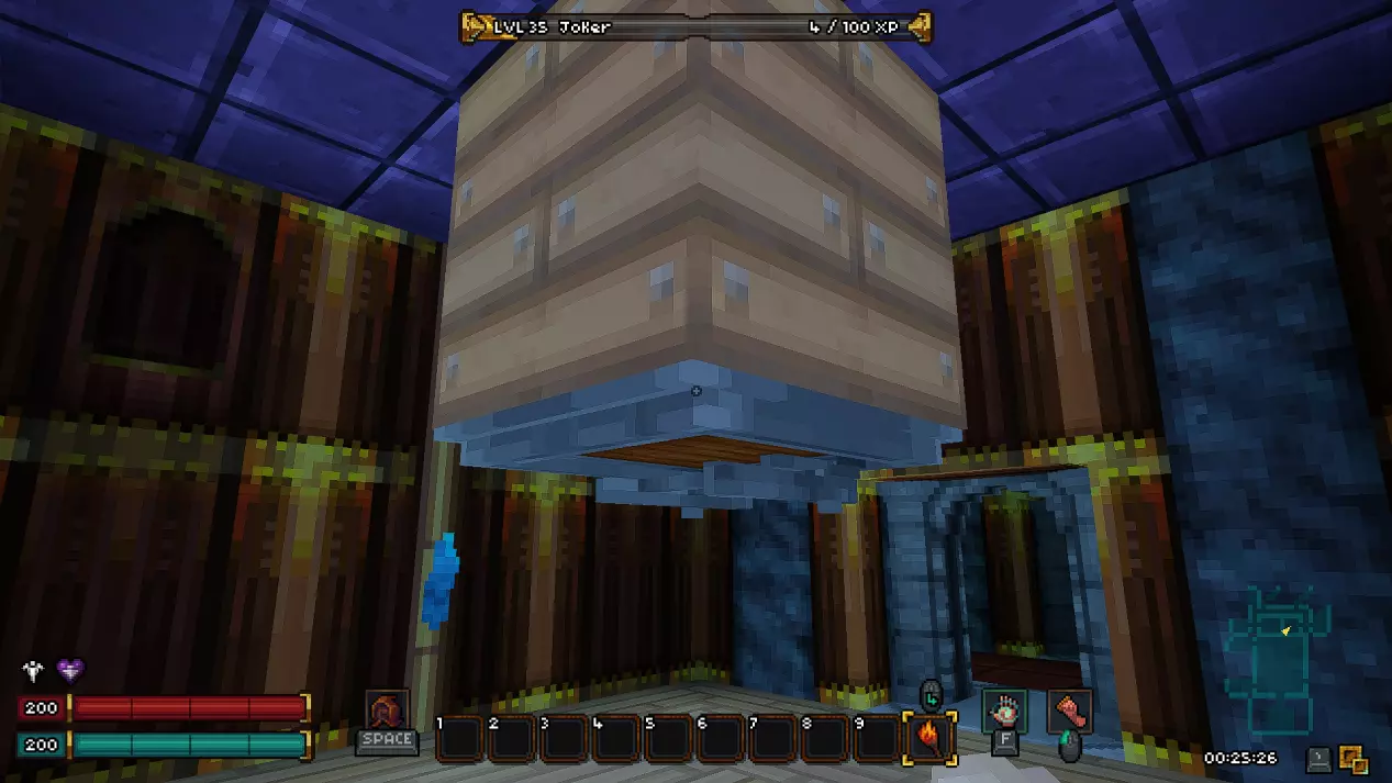 这里会有一个带有【我的世界】风格镐子和拉杆的房间。拉动拉杆后,向右上角游去。