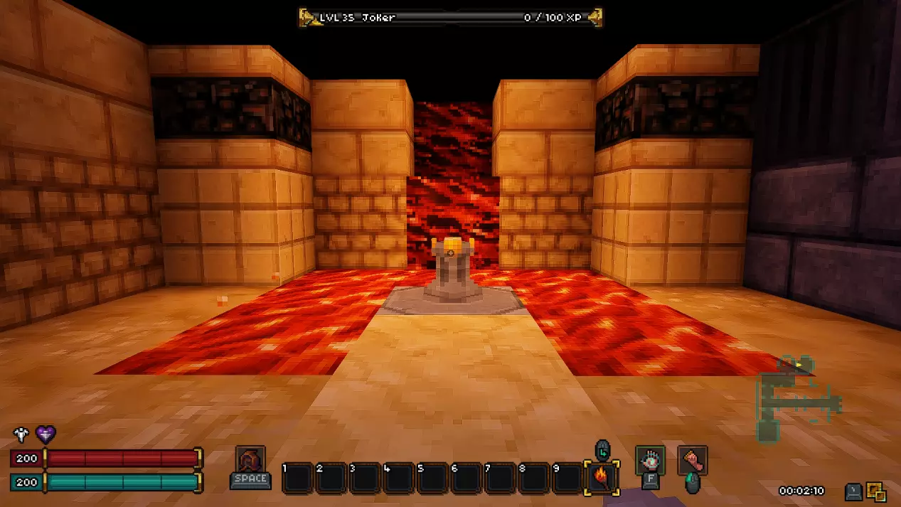 激活拉杆后,我们需要到达格栅处(任何形式的悬浮能力都能提供帮助)。一边会有尖刺,另一边则是巨石。我们可以用镐子敲碎巨石,再把物品扔到尖刺上。里面有一片熔岩湖和一个传送门,进入传送门即可。