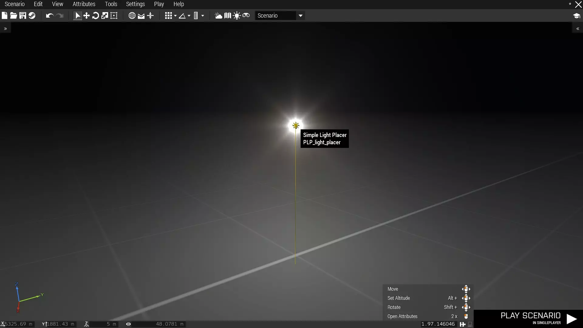 字符串:动画名称 通常无需手动编辑。 数字:动画时间 上文已说明。 对象:附加至 默认值为objNull(表示不附加)。将其设为某个对象的变量名,单位将会附加到该对象上。 在尝试拍摄包含移动载具上方单位的镜头时非常有用。 布尔值:启用手电筒和激光 默认值为false。设为true则启用。 如果单位拥有手电筒或激光,单位将会将其开启。 此功能必须在夜间使用。 布尔值:启用另一种播放方式 默认值为false。设为true则启用。 这是一种不稳定的动画播放方式。它能实现一些新功能,但说实话不建议过多使用。 字符串:手势名称 通常无需手动编辑。 字符串:模仿名称 通常无需手动编辑。第三节 - 最实用的自定义物品 注意:部分自定义资源存在错误行为,请谨慎使用。POLPOX's Artwork Supporter 提供了一些有助于截图创作的资源。 下面为你介绍其中的一部分。 注意:部分自定义资源具有自定义属性。若要编辑属性,请打开属性面板并向下滚动至【Object Specific】部分。 Artwork Supporter 道具 > 灯光 > 简易灯光放置器 灯光的重要性可能超出你的想象。简易灯光放置器可在你需要的位置提供简单的光源。
