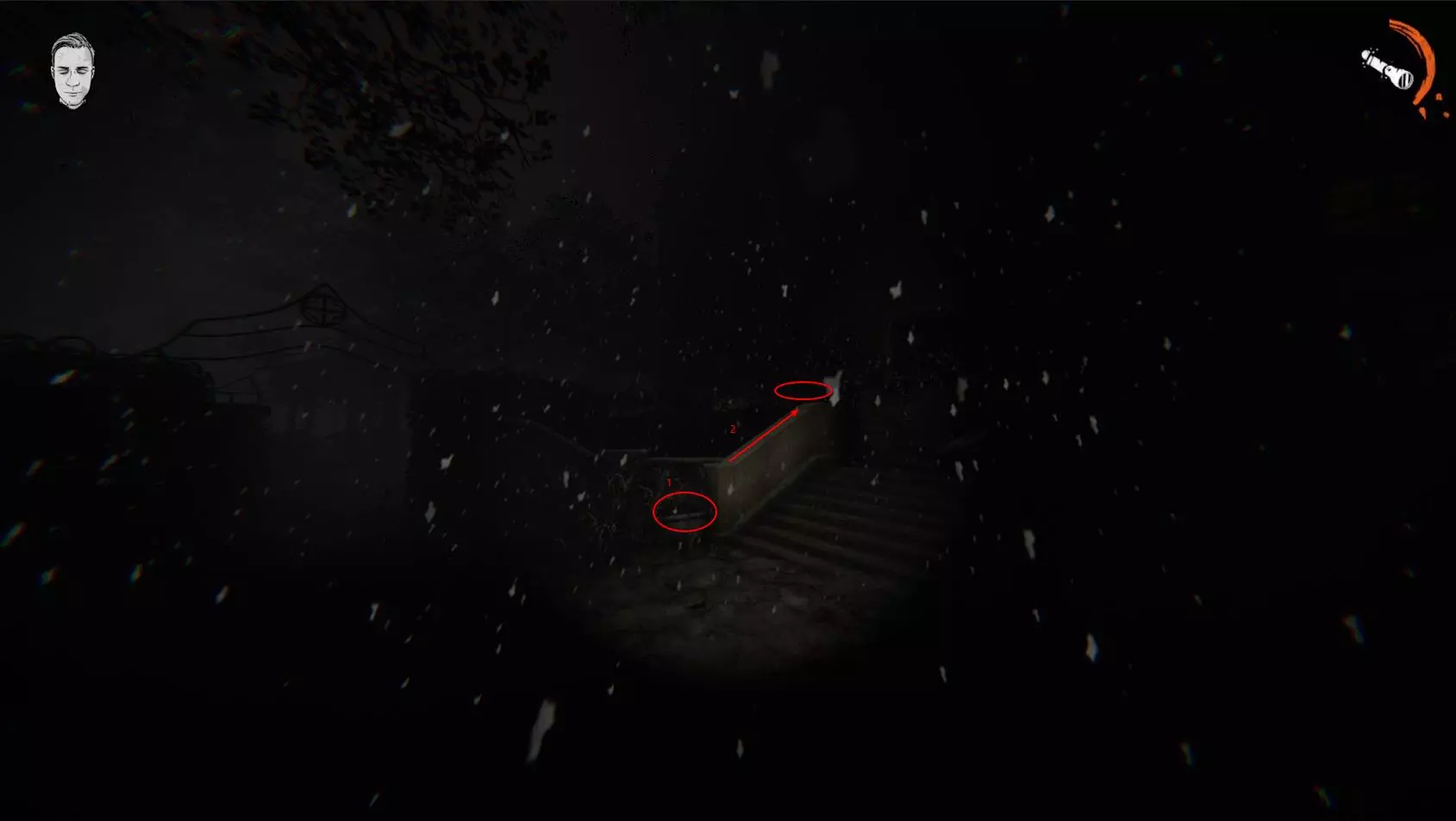 本指南旨在帮助那些尚不了解这些安全地点的玩家。 重要提示 注意1: 要让这些地点发挥作用,你必须: 始终关闭手电筒 手中不能持有山羊、老鼠、鸡蛋、书本、猪或头颅/铲子(注:当你手持上述物品时,阿撒泻勒总会找到你,并一直在你附近徘徊) 注意2: 通常来说,要躲避阿撒泻勒,始终关闭手电筒是关键,这就像是在和他玩捉迷藏。有时他会从你面前经过,如果你关闭了手电筒,他就不会看见你。但如果你手中持有山羊、老鼠、鸡蛋、书本、猪或头颅/铲子,他总会找到你。注意事项3: 在安全区域以及需要频繁往返的地方,阿撒泻勒(AZAZEL)通常会离开并试图寻找其他玩家(即使你是在单人模式下游戏),但如果你手中持有山羊、老鼠、蛋、书、猪或头颅/铲子,它就绝不会离开。 以下是焚烧山羊、老鼠、蛋、书、猪或头颅时所需的击晕次数: 合作模式: 1人:需要击晕1次 2-3人:需要击晕2次 4-5人:需要击晕3次 6-7人:需要击晕4次 8-10人:需要击晕5次 单人模式: 1-3人:需要击晕1次 4-7人:需要击晕2次 8-10人:需要击晕3次农场 这是刚开始的时候,在正门处。你需要先跳到花盆(1)上,然后跳到边缘(2),接着再跳到栅栏(3)上。