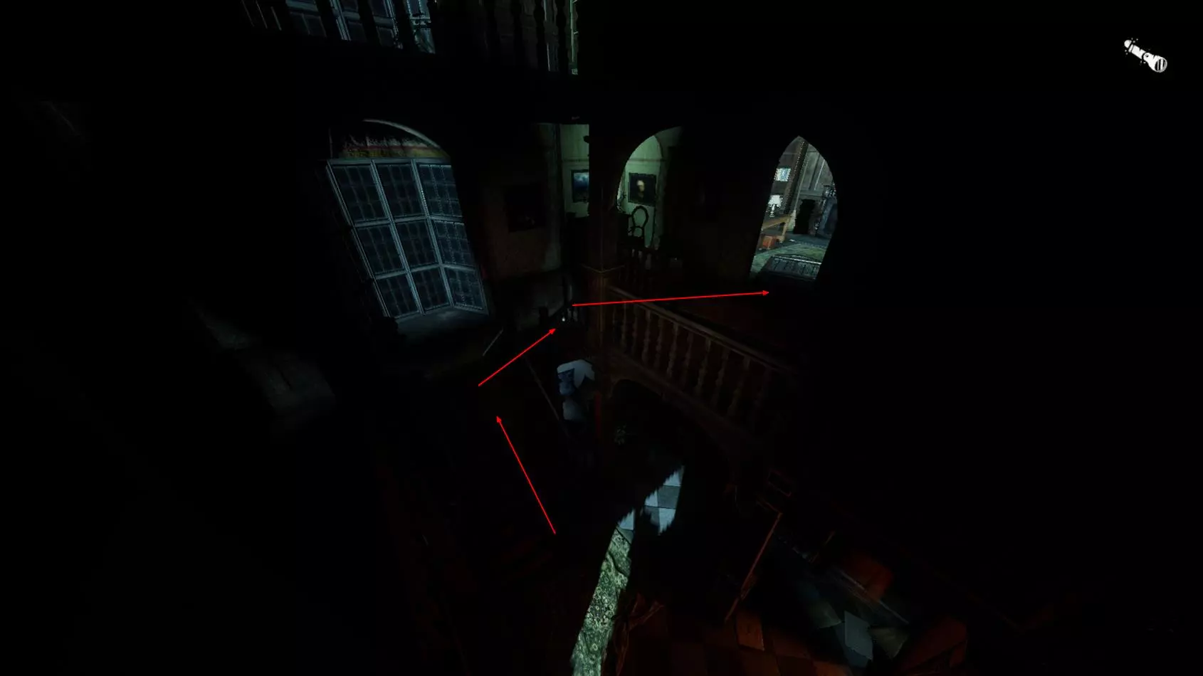 当你在这里时,非常重要的一点是,当【内森(屠夫)】靠近时一定要跳跃,因为如果你静止不动,他就会抓住你。 这里有两个选择: 1. 将他打晕/击晕。 2. 等待他离开。 如果你想击晕他,要等他上下楼梯的时候,那是最佳时机。 你也可以跳跃并观察区域,看看他会从哪里过来。