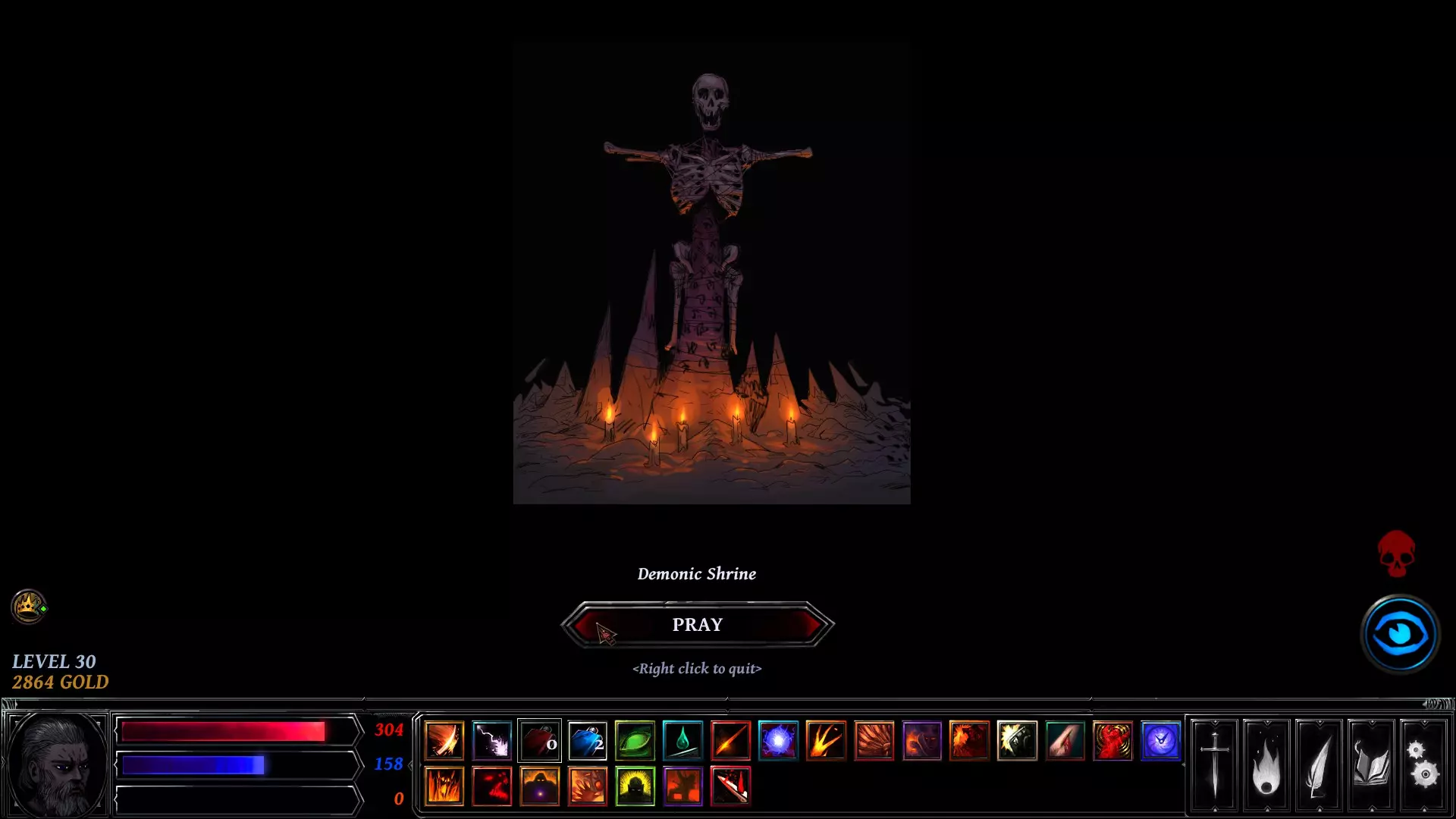 这是一座恶魔祭坛。与它互动进行祈祷,可选择一位恶魔进行崇拜——每位恶魔都会赐予独特的增益效果。以下是各恶魔提供的增益: 摩洛克祭坛 “摩洛克为其仆从准备的奖赏。” 立即获得金币。 玛门祭坛 “玛门的金币流向不敬神的灵魂。” 敌人掉落的金币增加25%。 路西法祭坛 “堕落天使不会向弱者与伤残者赐福。” 获得10%护甲加成。 贝里特祭坛 “贝里特为疲惫之人赐予第二次呼吸。” 恢复生命值与法力值。 别西卜祭坛 “别西卜希望我为他的荣耀浴血奋战。” 下次战斗后获得1瓶生命药水。 巴尔祭坛 “巴尔只向濒临死亡之人借出他的暗影。”+5%闪避率(仅在低生命值时激活)。 阿斯塔罗特圣坛 “阿斯塔罗特在我肩头低语,传授他的知识。” 获得额外经验值。 阿斯蒙圣坛 “阿斯蒙渴望饮下我敌人的鲜血。” 近战攻击时窃取生命。 撒旦圣坛 “我必须击败撒旦的爪牙,他才会赐予我力量。” +7%暴击率。 异常现象