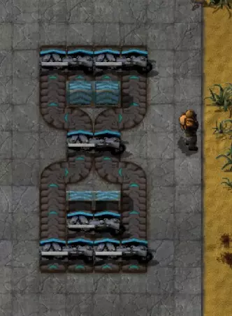 从4条传送带组中间的单条传送带进行分流时,要确保通过分流处周围的地下传送带输送其他物品。 我喜欢在装配线的传送带侧至少留出3格空间——1格用于机械臂,2格用于传送带。我还喜欢在装配机之间放置箱子,这样它们就能沿生产线向上输送中间产品。