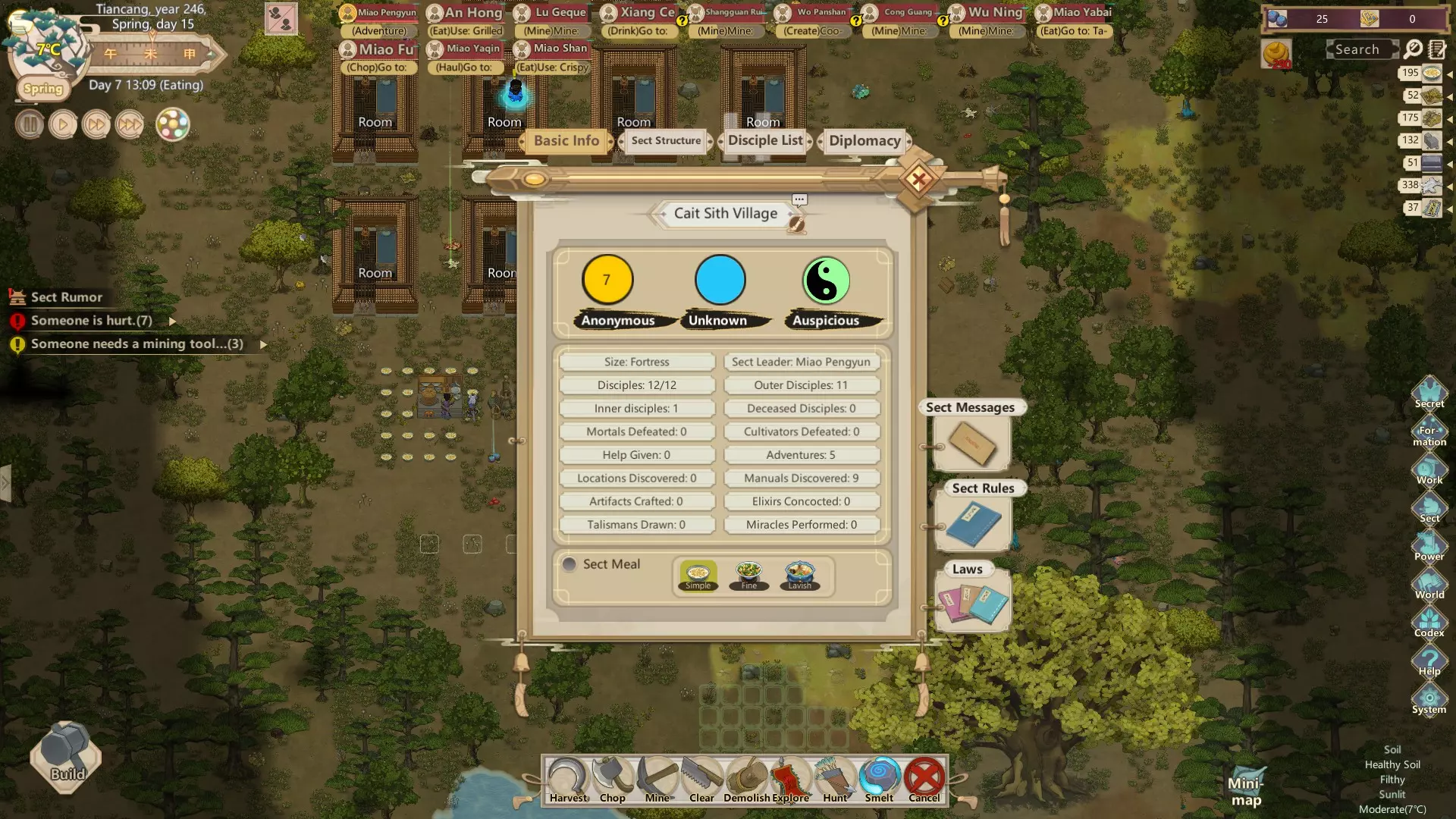 这确实相当成功!凭借我高超的说服力,我平均每天能招募到两个人。到第一周结束时,我们已经拥有了足够数量的弟子,足以让门派发展壮大。