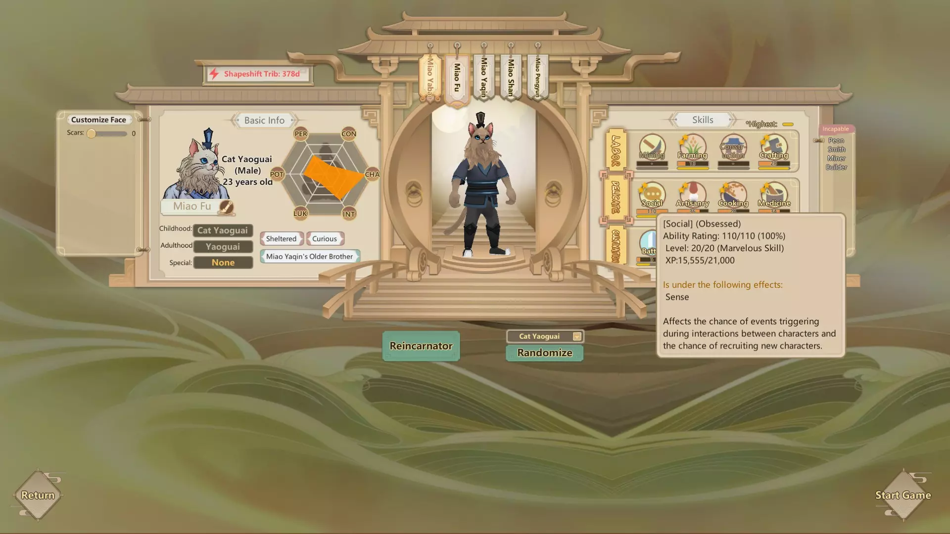如何获得新的外门弟子 简介 喵,道友。任何修行者都知道,心境平和在修炼中至关重要。若想真正高效修炼,就需不受世俗欲望的干扰。因此,让外门弟子负责耕种田地、建造住所、准备膳食、炼制丹药以及生产交易物品,就显得尤为关键。 当然,即便已在某一法则上取得显著进展,创造有智慧且能干的生命仍非力所能及。招募新弟子有两条途径。 第一条途径是等待他们主动前来。这种方法速度较慢,因为如果你所在的宗门尚未声名远扬,凡人界的居民就不会前往他们眼中的偏僻之地寻找你并成为你的弟子。 第二种方法是派遣修行者前往凡人界主动招募弟子。这种方法速度快得多,如果你现在就需要新的外门弟子,推荐使用此方法。该方法的秘诀记录在本手册中。 基础理论 声名不显的宗门招募新弟子需满足以下条件: 1. 拥有内门弟子,因为只有他们才能确保在路途中的安全。1. 若你的宗门尚无内门弟子,但有幸获得【结丹】,可立即将此丹药给予一名外门弟子以晋升其为内门弟子;否则,就必须专注于快速提升宗门根基。 2. 选择派往凡间的使者时需谨慎。招募成功的几率受使者的【魅力】、【社交技能】以及【运气】影响。 3. 派遣内门弟子前往繁华城市历练。小村庄不行,那里人太少。 4. 等待事件触发,让你的内门弟子展现仙人风范。 5. 若成功,新招募的弟子将从城市出发,抵达你的宗门。智慧 曾经有段时间,我们凯特西丝村陷入了困境。那时我们只有猫妖怪,它们柔软的爪子根本无法从事建筑、伐木和采矿这类脏活累活。