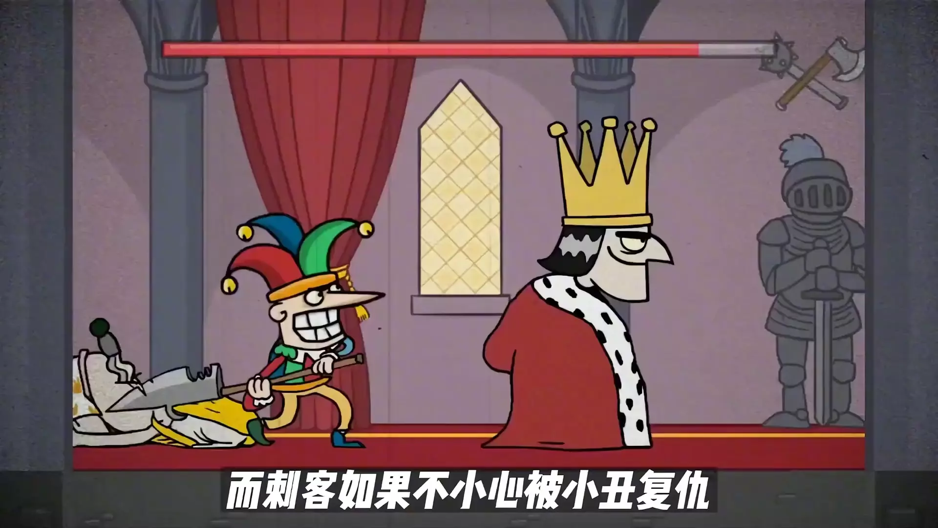 这是罗伯兔游戏营地的《刺杀国王》动画短片,展示了游戏里的细节,比如开局刺客的新手匕首,国王的帽子也是匕首,刺客持有匕首是为了一击必杀,还有登上暗黑王位的相关内容。