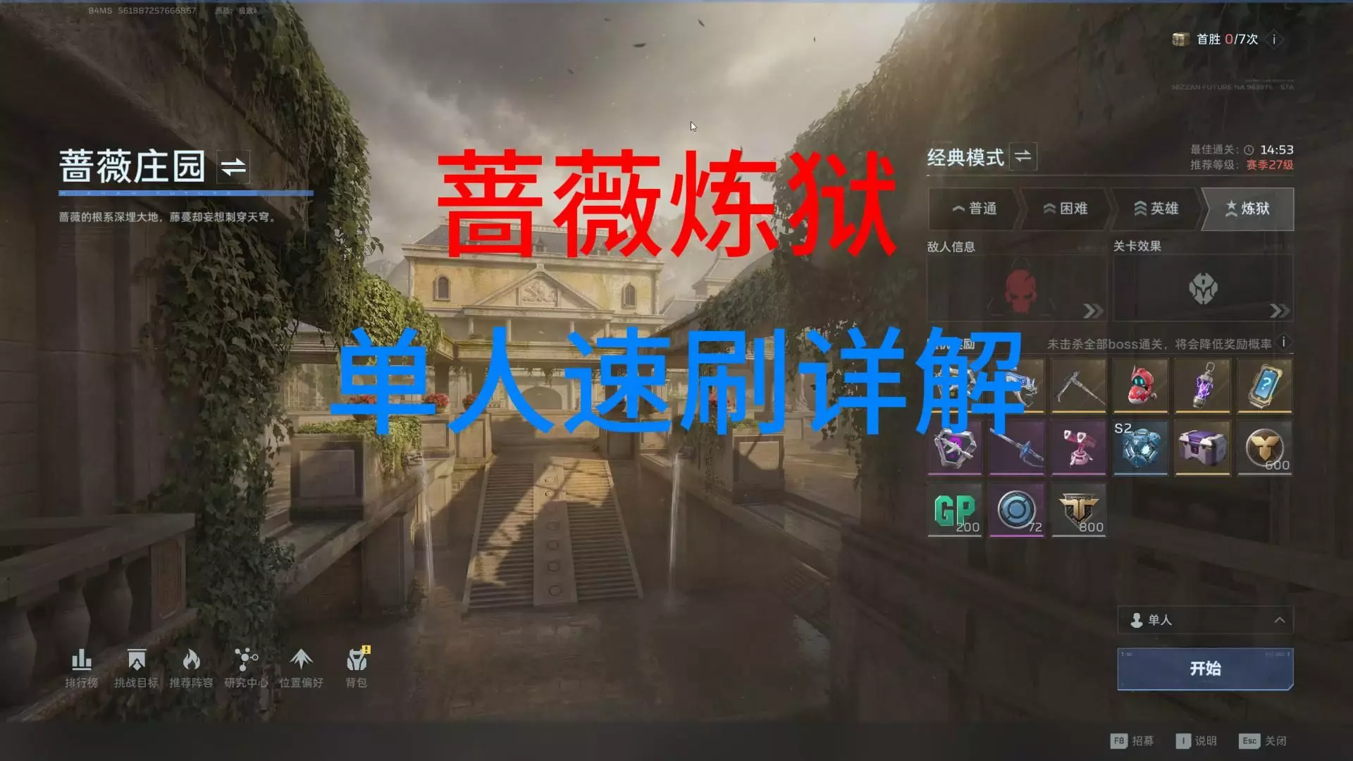 逆战未来·塔防蔷薇庄园单人炼狱速刷详解,如果本视频对你有帮助的话,麻烦您给个一件三联哦,谢谢各位观众老爷!!!