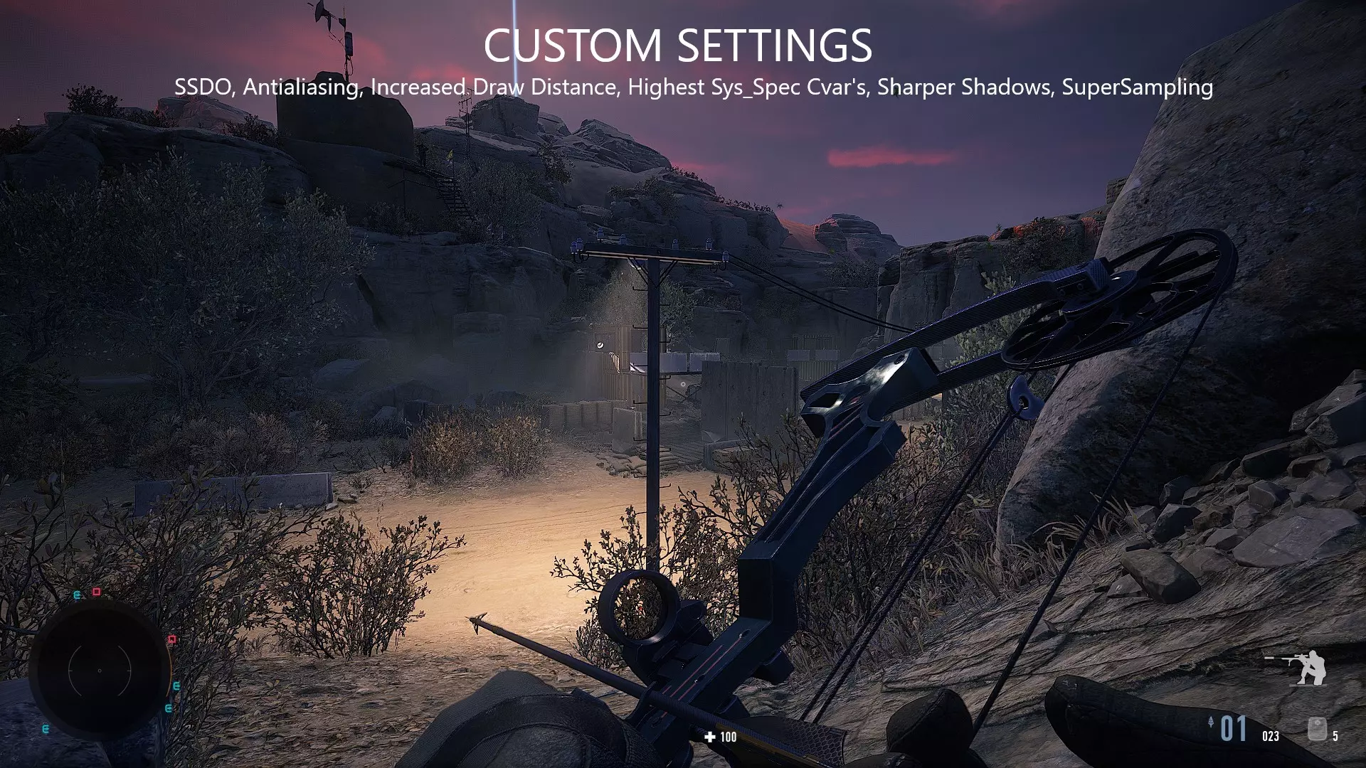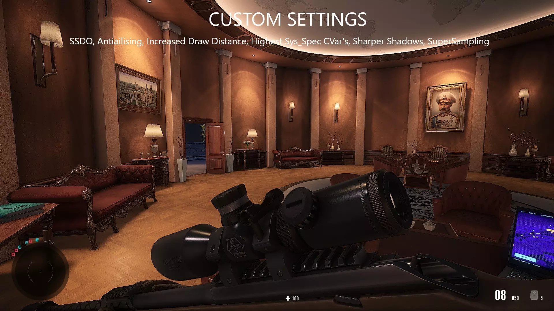 Improved Graphical Fidelity Settings for Sniper Ghost Warrior Contracts 2. This guide will alter settings in an Autoexec.cfg file in order to achieve better graphical fidelity in the game. I created a settings for SGW 3 and Sniper Ghost Warrior Contracts 1, and am now including the same settings for Sniper Ghost Warrior Contracts 2. These settings will require appropriate PC hardware in order to achieve the intended results. Therefore, it is recommended that your system requirements meet the Recommended System Requirements for the game. These settings will push your GPU to the limit, but will result in a better, sharper image. Autoexec.cfg Contents Copy and paste the following into an autoexec.cfg in the game main folder. Once copy and pasted, save the file, and change its properties to "read only". Launch the game, and watch your GPU melt. sys_spec = 4 sys_spec_ObjectDetail = 4 sys_spec_Full = 4 sys_spec_GameEffects = 4 sys_spec_MotionBlur = 4 sys_spec_ObjectDetail = 4 sys_spec_Particles = 4 sys_spec_Physics = 4 sys_spec_PostProcessing = 4 sys_spec_Shading = 4 sys_spec_Shadows = 4 sys_spec_Sound = 4 sys_spec_Texture = 4 sys_spec_TextureResolution = 4 sys_spec_VolumetricEffects = 4 sys_spec_Quality = 4 sys_spec_Water = 4 sys_spec_light = 4 sys_spec_RayTracing = 4 ;Lights and Global Illumination e_DynamicLights = 1 e_StatObjTestOBB = 1 e_GI = 1 e_GIAmount = 0.6 e_GIMaxDistance = 100 e_GIIterations = 32 e_GINumCascades = 1 e_LightVolumes = 1 e_GIGlossyReflections = 1 e_GIMaxDistance = 150 e_GIRSMSize = 512 e_GISecondaryOcclusion = 1 e_Gsm_Cache = 1 r_Beams = 1 r_BeamsDistFactor = 0.01 r_BeamsHelpers = 1 r_BeamsMaxSlices = 200 ;Clouds e_Clouds = 1 r_CloudsUpdateAlways = 1 e_ShadowsClouds = 1 e_SkyType = 1 e_SkyUpdateRate = 100 e_SkyQuality = 1 e_SkyBox = 1 e_Sun = 1 r_SunShafts = 2 e_TimeOfDaySpeed = 0.1 ;Color r_ColorBits = 32 r_DetailDistance = 20 r_DetailNumLayers = 2 r_DepthBits = 32 r_ColorGrading = 1 r_ColorGradingDof = 1 r_ColorGradingFilters = 1 r_ColorGradingLevels = 1 r_ColorGradingSelectiveColor = 1 r_CloakHeatScale = 0.25 r_CloakLightScale = 0.25 ;Textures r_TexAnisotropy = 16 r_TexMaxAnisotropy = 16 r_TexMinAnisotropy = 16 r_TexSkyResolution = 2 r_TexturesStreamingMipBias = -4 r_TexturesStreamPoolSize = 3072 r_DynTexAtlasCloudsMaxSize = 32 r_DynTexAtlasSpritesMaxSize = 32 r_DynTexMaxSize = 80 r_EnvCMResolution = 2 r_EnvTexResolution = r_TexNoAnisoAlphaTest = 0 r_texturesHighResMips = 2 ;Fog e_Fog = 1 r_FogShadows = 1 r_FogShadowsWater = 2 r_FogDepthTest = 0 ;Foliage, Vegetation and Terrain e_ViewDistRatioDetail = 125 e_ViewDistRatio = 125 e_ViewDistRatioVegetation = 125 e_ViewDistMin = 10 e_ViewDistRatioLights = 75 e_TerrainOcclusionCullingVersion = 1 e_PhysFoliage = 2 r_VegetationSpritesTexRes = 64 e_VegetationAlphaBlend = 1 e_LodRatio = 40 ;Lights and Global Illumination e_DynamicLights = 1 e_GIGlossyReflections = 1 r_FlareHqShafts = 1 r_Beams = 1 r_BeamsDistFactor = 0.01 r_BeamsHelpers = 1 r_BeamsMaxSlices = 200 r_BeamsSoftClip = 0 r_Glow = 1 r_FlareHqShafts = 1 r_Flares = 1 r_FlaresChromaShift = 6 r_FlaresTessellationRatio = 1 r_FlaresIrisShaftMaxPolyNum = 0 r_LightPropagationVolumes = 1 r_DeferredShadingLights = 1 r_DeferredShadingSortLights = 1 r_DeferredShadingSSS = 1 r_DeferredShadingTiledHairQuality = 2 ;Anti Aliasing r_MSAA = 1 r_MSAA_quality = 16 r_MSAA_samples = 16 r_PostMSAA = 1 r_PostMSAAMode = 2 r_AntialiasingMode = 3 r_AntialiasingTAAMode = 4 r_AntialiasingTAAPattern = 4 r_AntialiasingTSAAMipBias = -3 r_AntialiasingTSAASubpixelDetection = 1 r_AntialiasingTSAASmoothness = 0.15 r_AntialiasingTAASharpening = 1 r_AntialiasingModeSCull = 1 r_AntialiasingTAAFalloffHiFreq = 0.5 r_AntialiasingTAAFalloffLowFreq = 0.3 r_AntialiasingTAAPattern = 2 r_UseEdgeAA = 2 r_StencilBits = 8 r_AntialiasingSMAAThreshold = 0.1 ;Shaders r_ShadersDX11 = 1 r_Reflections = 1 q_Quality = 3 q_ShaderFX = 3 q_Renderer = 3 q_ShaderGeneral = 3 q_ShaderGlass = 3 q_ShaderIce = 3 q_ShaderMetal = 3 q_ShaderPostProcess = 3 q_ShaderSky = 3 q_ShaderShadow = 3 q_ShaderTerrain = 3 q_ShaderVegetation = 3 q_ShaderWater = 3 q_ShaderHDR = 3 r_TranspDepthFixup = 1 ;PostProcessing r_PostProcessEffectsFilters = 1 r_PostProcessEffects = 1 r_PostProcessFilters = 1 r_PostProcessEffectsGameFx = 1 r_PostProcessGameFx = 1 r_PostProcessHUD3D = 1 r_PostProcessHUD3DCache = 1 ;Lighting r_silhouettePOM = 1 r_UsePOM = 1 ;Sun r_SunShafts = 2 r_CoronaFade = 0.5 r_Coronas = 1 r_CoronaSizeScale = 1 r_CoronaColorScale = 1 r_ColorGradingSelectiveColor = 1 e_Sun = 1 ;Rain r_RainDropsEffect = 1 r_Rain = 2 r_RainMaxViewDist = 100 r_RainMaxViewDist_Deferred = 200 r_RainGBuffer = 1 r_RainOccluderSizeTreshold r_ChromaticAberration = 1.5 r_Supersampling = 1.99 r_SupersamplingFilter = 1 r_Sharpening = 5 r_ssdo = 2 r_SSReflections = 3 r_Refraction = 1 r_ssdoAmbientAmount = 1 r_ssdoAmountDirect = 1.5 r_ssdoAmountReflection = 1.5 r_ssdoRadius = 0.3 r_ssdoRadiusMax = 2 r_ssdoRadiusMin = 0.1 e_Shadows = 1 e_ObjShadowCastSpec = 4 e_shadows_debug = 0 e_shadows_from_terrain_in_all_lods = 1 e_shadows_frustums = 0 e_shadows_max_texture_size = 4096 e_shadows_occ_check = 0 e_shadows_slope_bias = -4 e_ShadowsBlendCascades = 1 e_ShadowsCastViewDistRatio = 20 e_ShadowsCastViewDistRatioLights = 0.5 e_shadowsclouds = 1 e_ShadowsConstBiasHQ = 1 e_ShadowsLodBiasFixed = 1 e_ShadowsLodBiasInvis = 3 e_ShadowsMasksLimit = 2 e_ShadowsMaxTexRes = 4096 e_ShadowsOcclusionCulling = 1 e_ShadowsOnAlphaBlend = 1 e_ShadowsOnWater = 1 e_ShadowsPoolSize = 4096 e_ShadowsResScale = 40 e_ShadowsStaticMapUpdate = 2 e_ShadowsTessellateCascades = 1 e_ShadowsTessellateDLights = 1 e_ShadowsUpdateViewDistRatio = 256 e_volobj_shadow_strength = 0.5 r_DrawNearShadows = 1 r_DrawNearZRange = 1 r_FogShadows = 2 r_FogShadowsWater = 1 r_ShadowBlur = 3 r_ShadowBluriness = 1 r_ShadowGen = 1 r_ShadowGenGS = 1 r_ShadowGenMode = 1 r_ShadowJittering = 2.5 r_ShadowPass = 1 r_ShadowPoolMaxFrames = 0 r_ShadowPoolMaxTimeslicedUpdatesPerFrame = 100 r_ShadowsAdaptionMin = 0.35 r_ShadowsAdaptoinSize