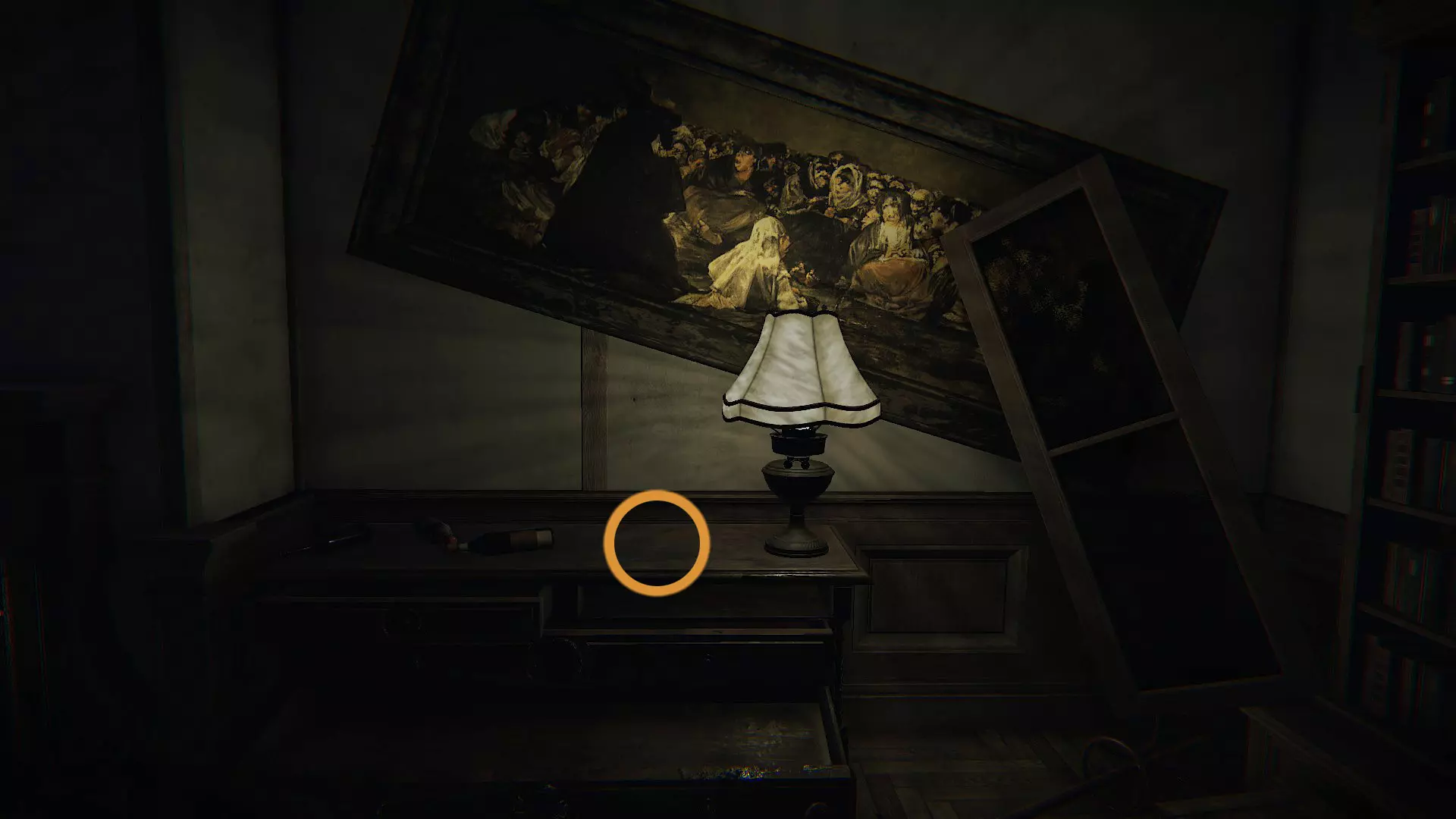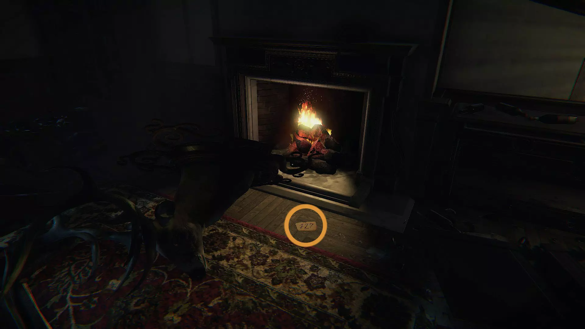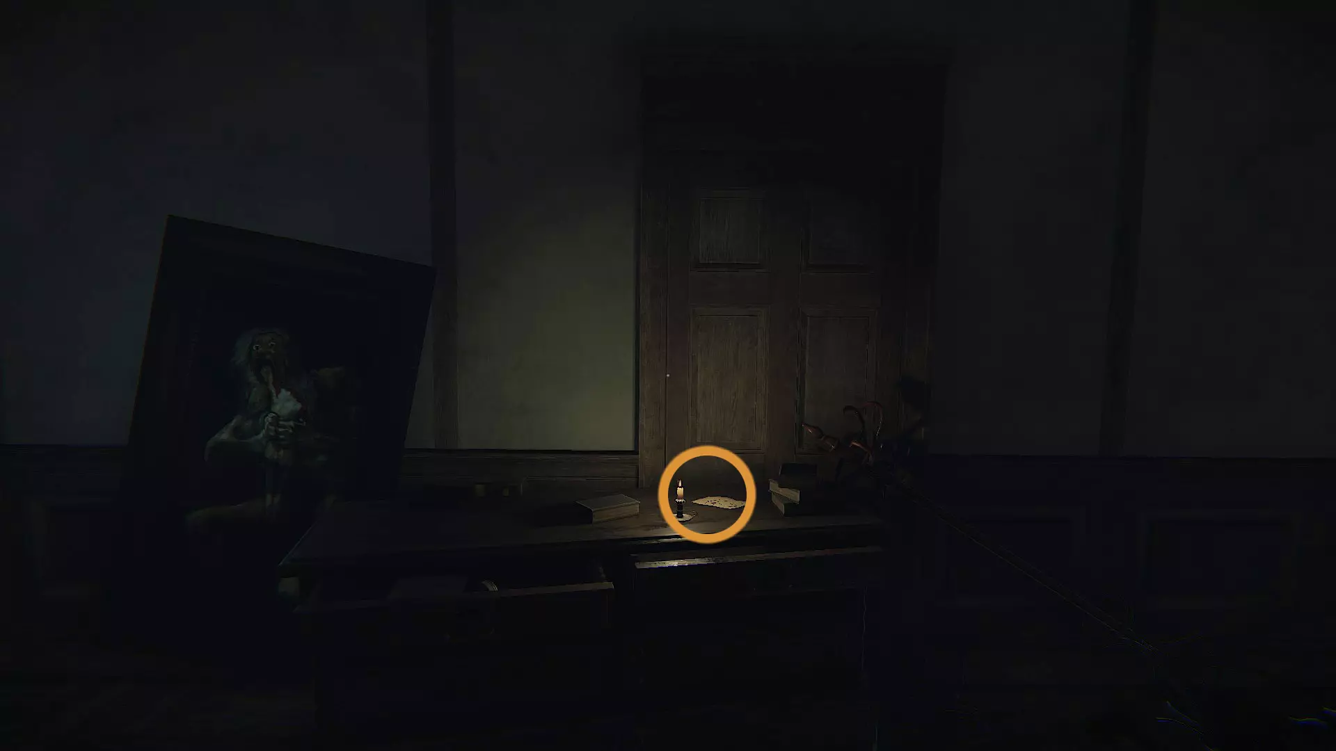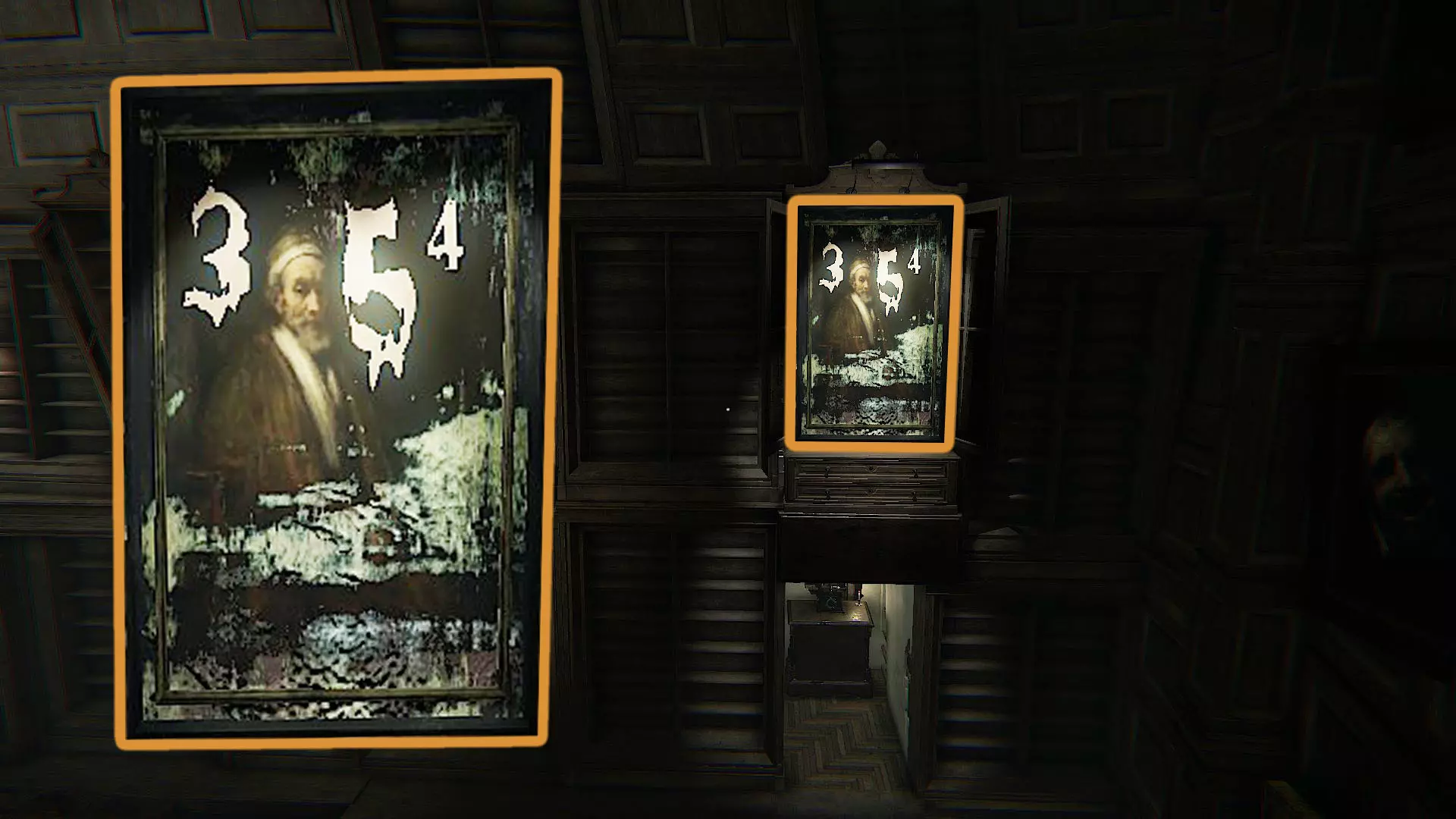 在底部有一些蜡烛,如果你点燃它们,上方的三幅画会显示出数字:5、4和8。
