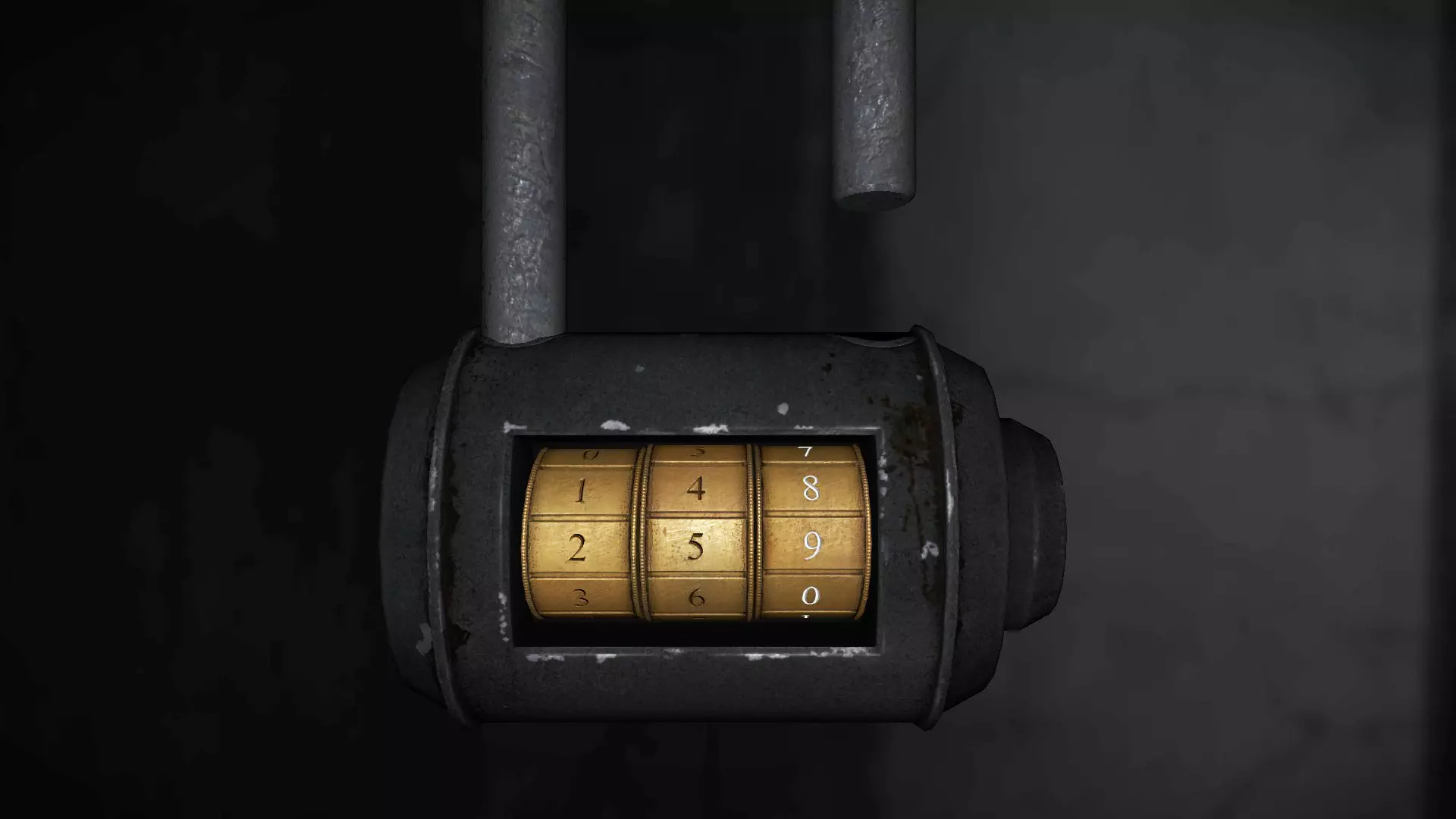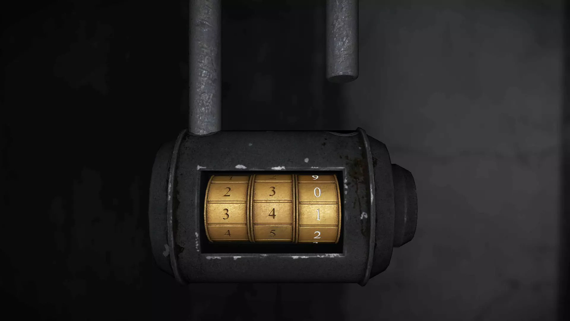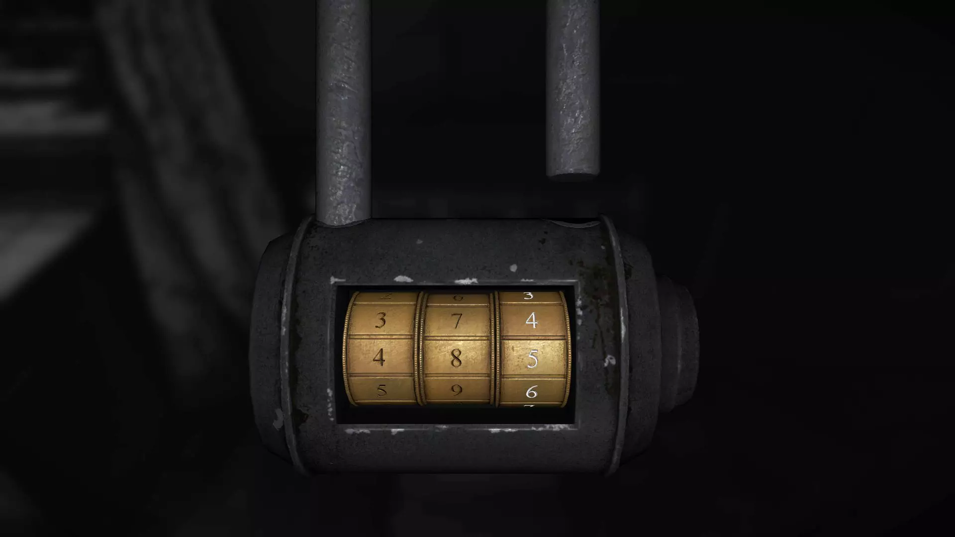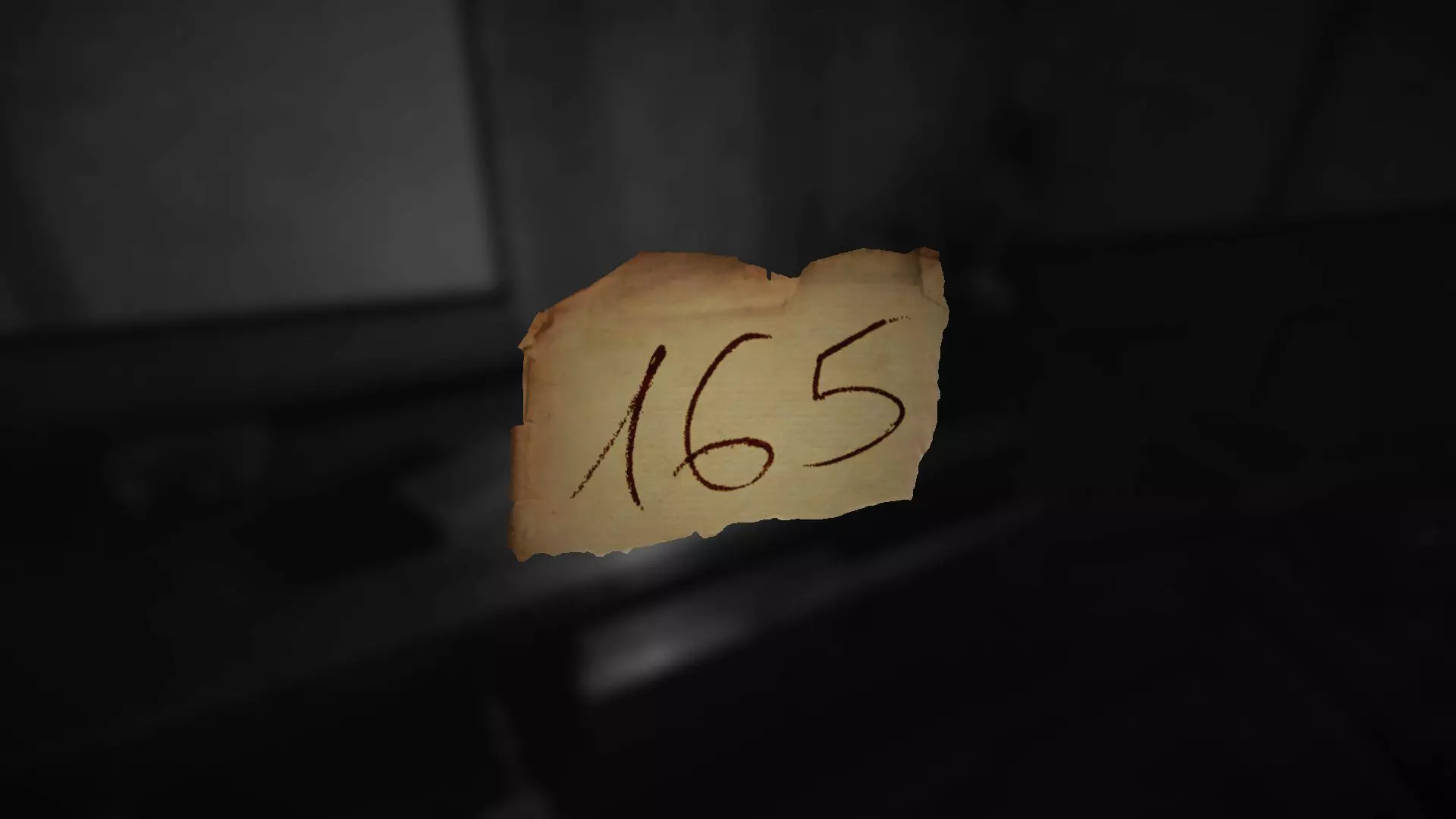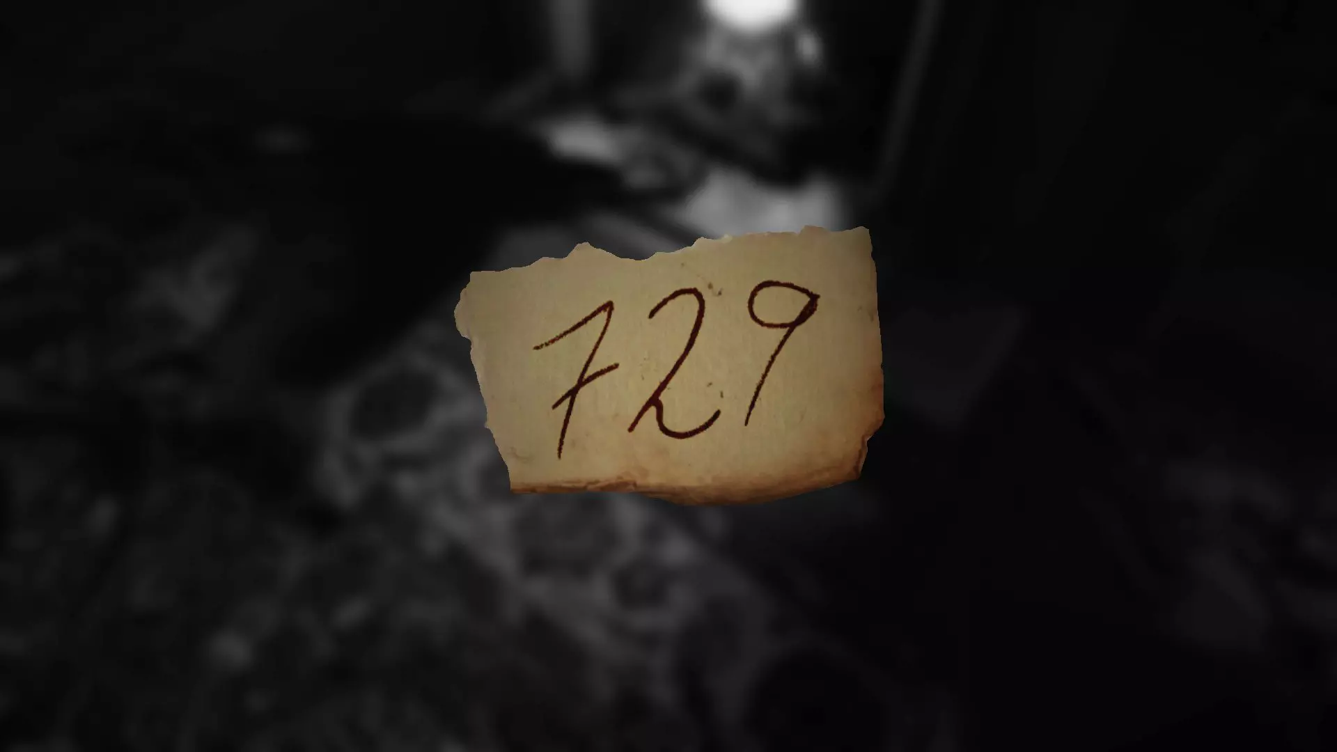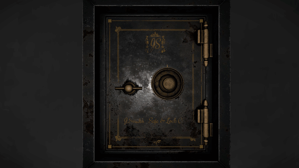 在下方图片所示的三个位置之一,有一张写着密码的小纸条。密码会是以下两个数字中的一个:729或165。 如果是729,你需要在保险箱中输入70、20、90。 如果是165,则需要在保险箱中输入10、60、50。 输入方法是:首先,将转盘向【下】转动到10,然后向【右】转动到60,再向【下】转动到50。保险箱内有一把钥匙。