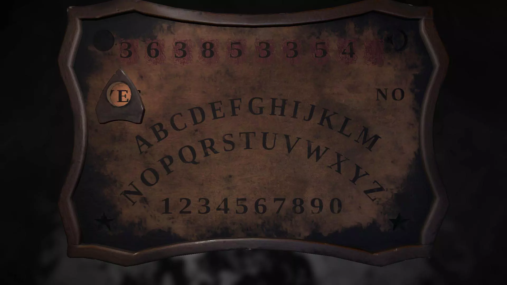 在第五章中,当出现需要你在电话上输入的多个数字时,第一个数字是363(和纸上最初出现的数字相同)。第二个电话你需要输入数字853(也出现在纸上)。第三个电话你输入了数字354,由此你可以推断出这些是缺失的数字。现在按顺序在通灵板上输入这些数字,然后按下“YES”:363853354 YES。